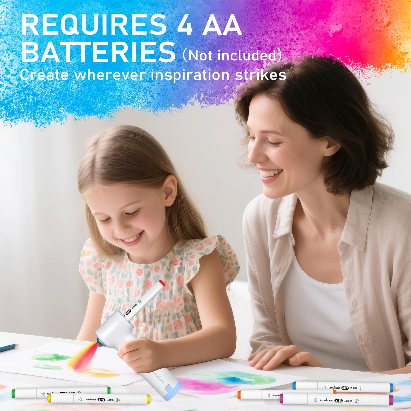 ?? Unleash Your Childs Creative Genius - Where Art, Science & Confidence Collide! ?? Join thousands of delighted parents and educators! Our ASTM-Certified Safe Air Brush Marker Set sparks imagination and learning. Watch young artists transform ordinary paper into exploding galaxies, dinosaurs with polka-dot skin, and school projects into award-winning masterpieces - all while discovering the physics of air pressure and color mixing! ?? Heres How the Creative Magic Works: Power Up & Pump! Kids get hands-on with the manual air pump (requires 2 AA batteries, not included) - its eco-friendly, teaches STEM principles, and puts them in control! Choose & Spray! Load the vibrant, washable ink marker, pick a stencil (or go freehand!), and unleash a burst of color! Create stunning effects with ease. Refill & Reuse! Keep the fun going (and reduce waste!) with refillable ink markers and 6 reusable, sturdy stencils. ?? Perfect For Endless Creative Adventures: Family Fun Nights: Upcycle cardboard boxes into fantastic space stations or jungle scenes! School Project Superstars: Elevate posters, dioramas, and book reports with professional-looking airbrush effects. On-The-Go Creativity: Pack the compact storage bag for mess-free art sessions during travel or playdates (goodbye screen time!). STEM Exploration: A hands-on tool for understanding air pressure, mechanics (using the mini screwdriver for easy maintenance), and color theory (with the helpful Color Brochure guide!). ? Peace of Mind for Parents: ASTM Certified: Non-toxic, safe art supplies for ages 6+. Washable Ink: Worry less! Most spills wipe clean from skin and fabrics (always test first). Built to Last & Organized: Includes a transparent storage bag to keep all 12 markers, 6 stencils, airbrush, pump, color brochure, and mini screwdriver neatly together.