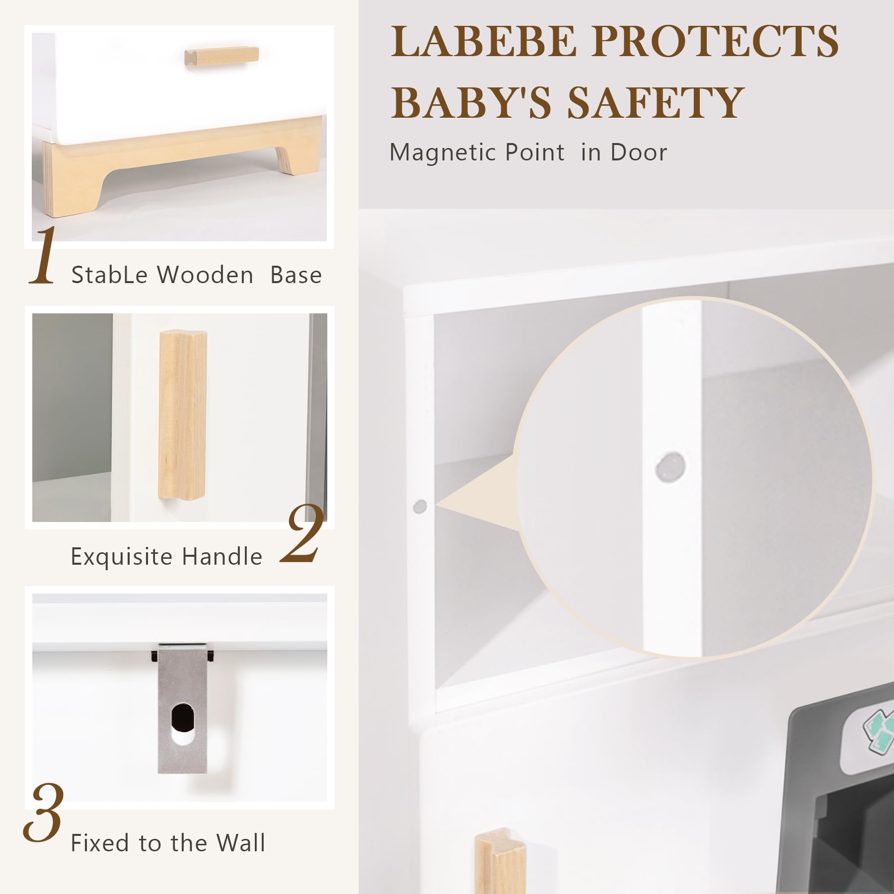 Labebe - Kitchen Wooden Fridge | Fridge Freezer For Toddlers, Kids' Kitchen Playset Toy, Baby Cabinet Refrigerator Pretend Play