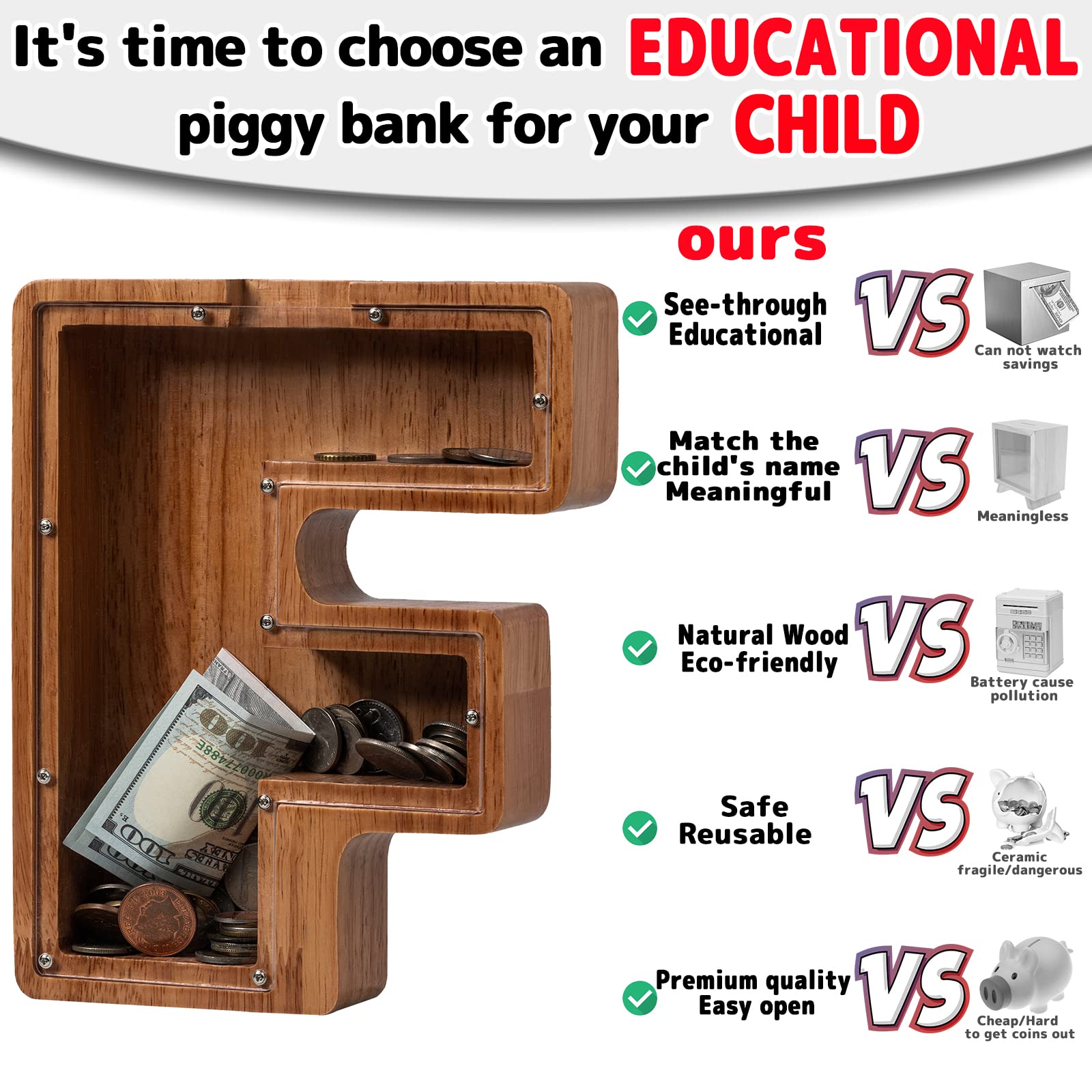 View compareLadenk 12 Inch Extra Large Wooden Kids Letter Piggy Bank - Piggy Bank For Boys Girls - Initial F Bank - Alphabet Money Bank For