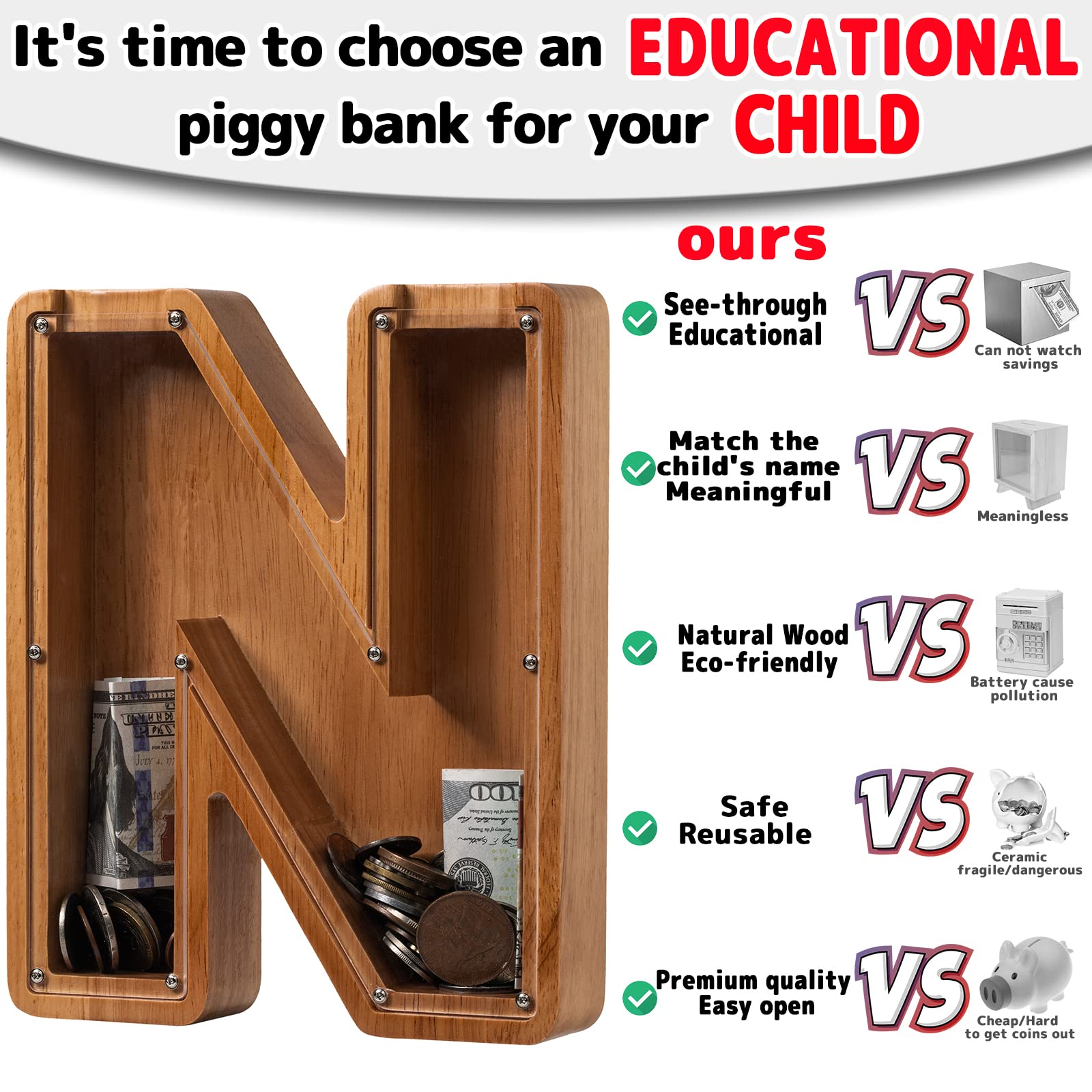 View compareLadenk 12 Inch Extra Large Wooden Kids Letter Piggy Bank - Piggy Bank For Boys Girls - Initial N Bank - Alphabet Money Bank For