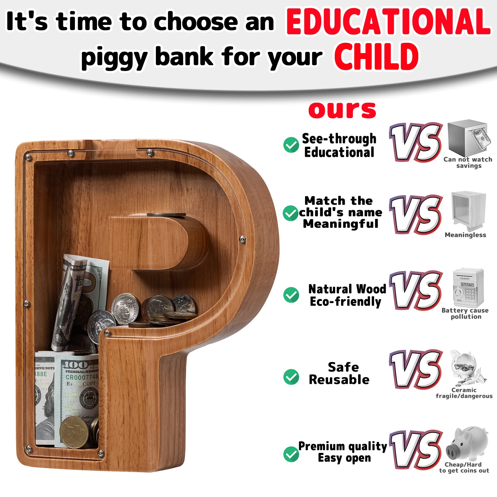 View compareLadenk 12 Inch Extra Large Wooden Kids Letter Piggy Bank - Piggy Bank For Boys Girls - Initial P Bank - Alphabet Money Bank For