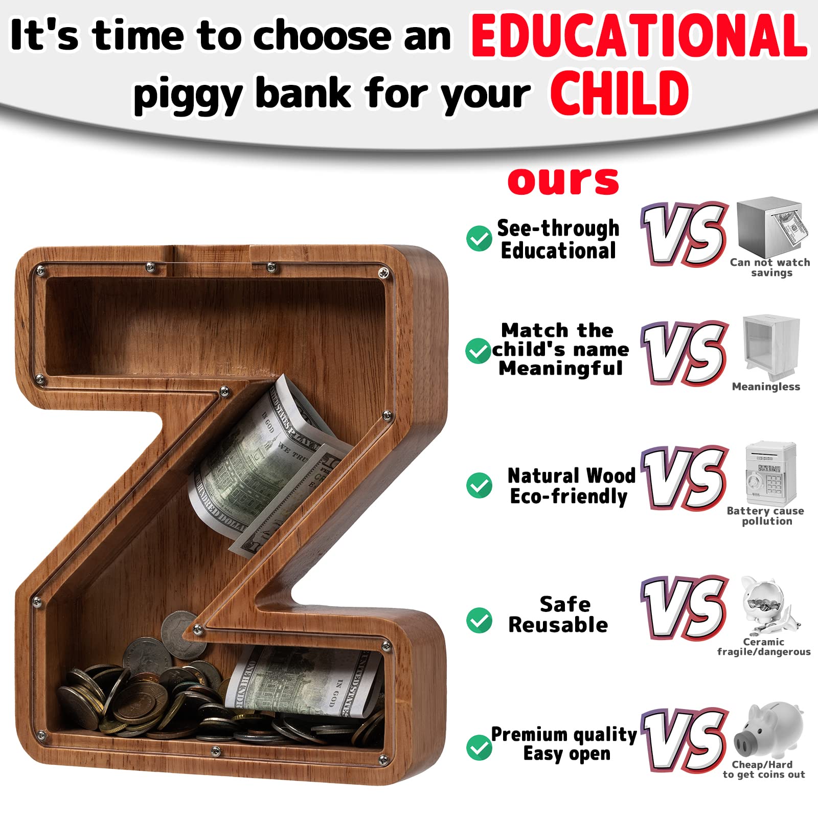 View compareLadenk 12 Inch Extra Large Wooden Kids Letter Piggy Bank - Piggy Bank For Boys Girls - Initial Z Bank - Alphabet Money Bank For