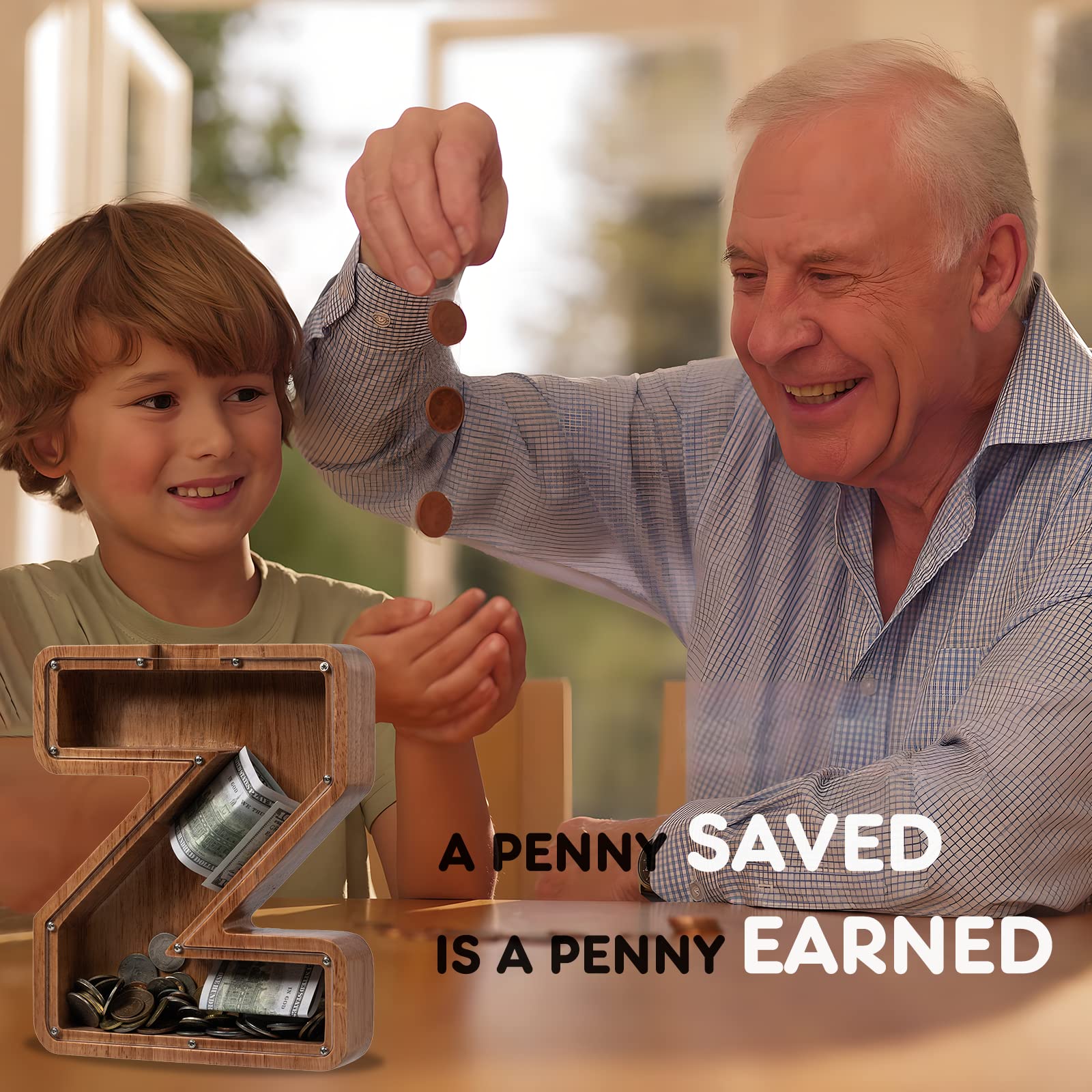 Ladenk 12 Inch Extra Large Wooden Kids Letter Piggy Bank - Piggy Bank For Boys Girls - Initial Z Bank - Alphabet Money Bank For