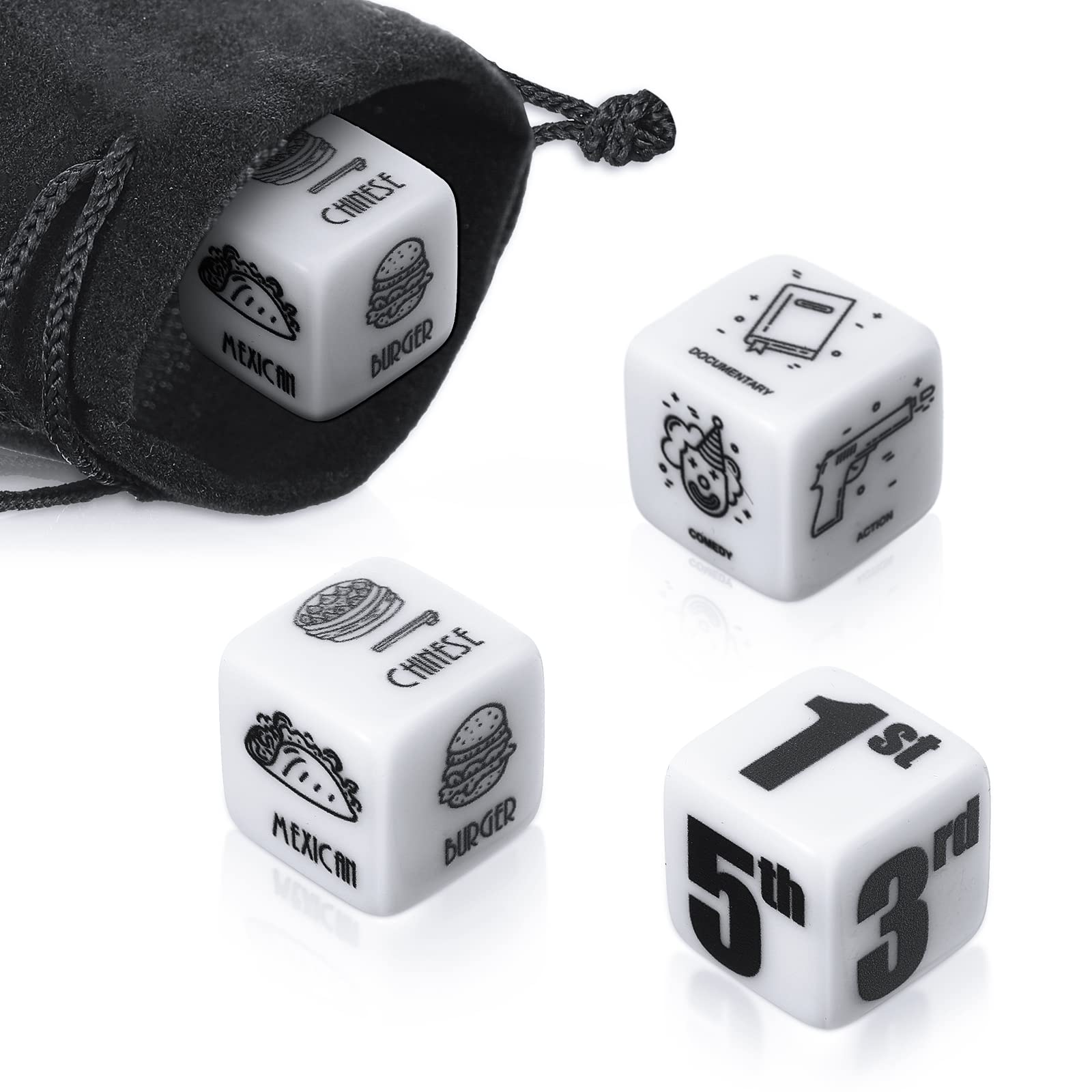 Landhoow 3 Pcs Dinner and a Movie Decider Dice Valentines Day Gifts for Him Her Decision Dice with a Black Velvet Storage Bag fo
