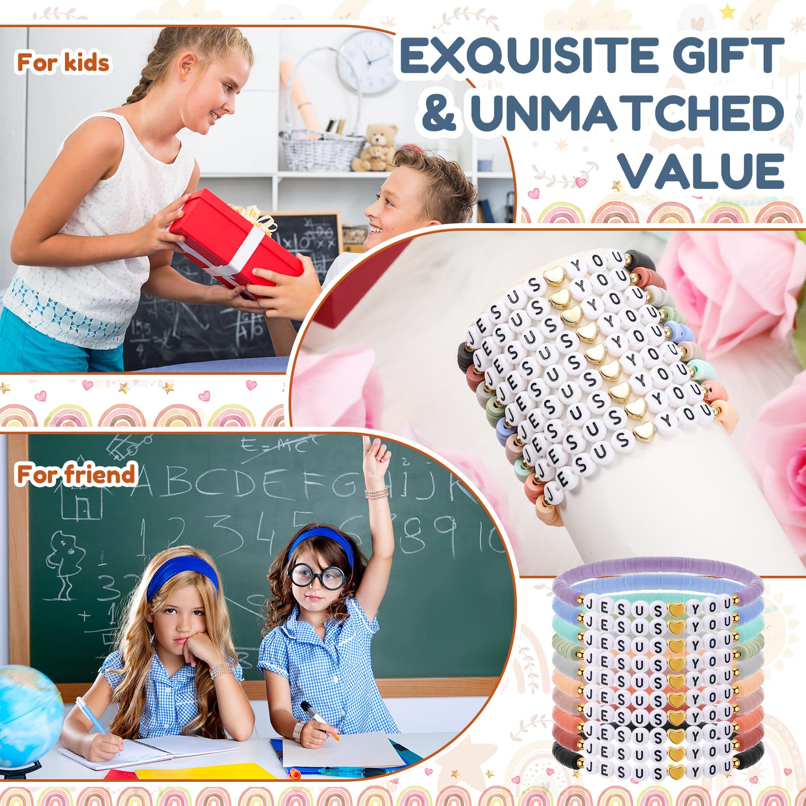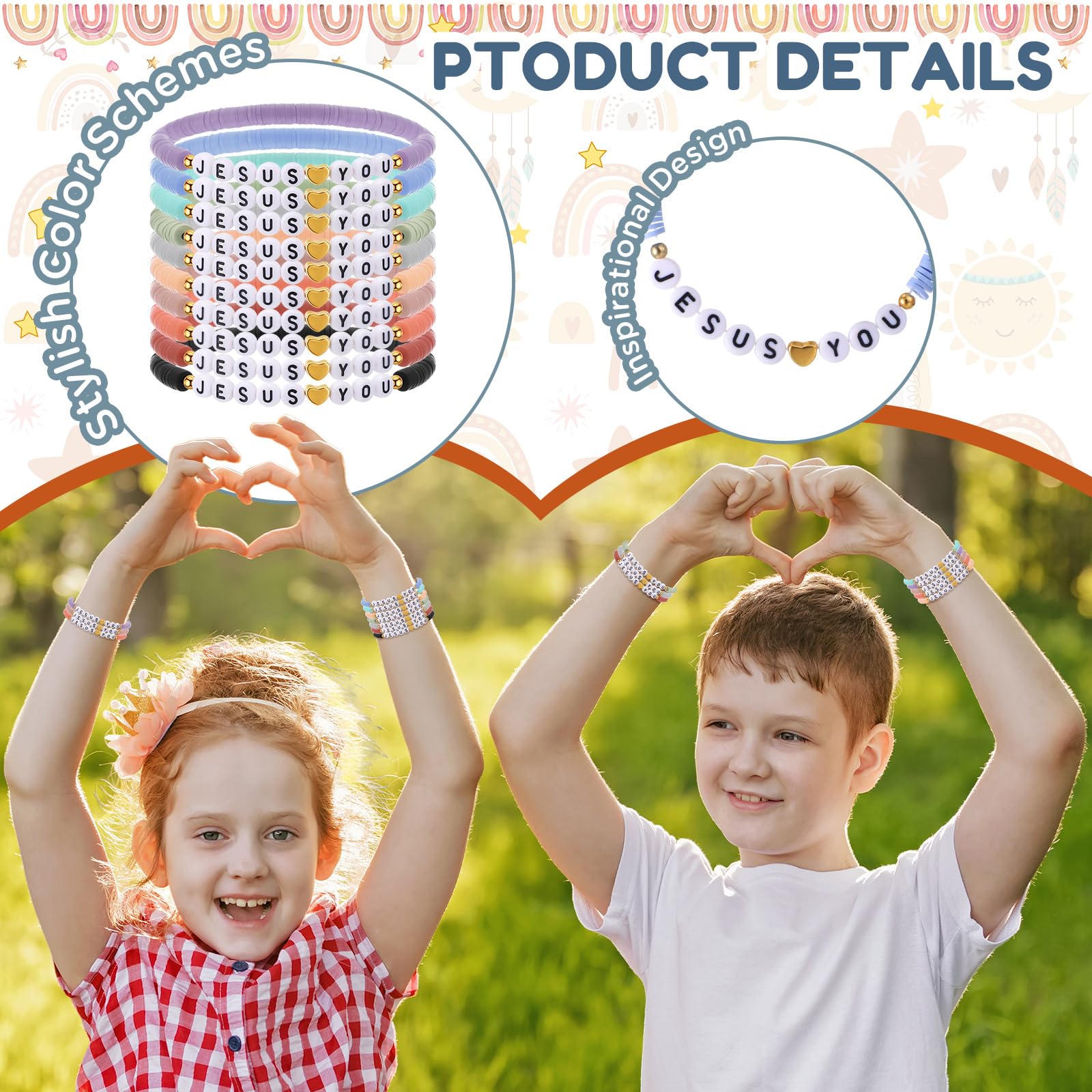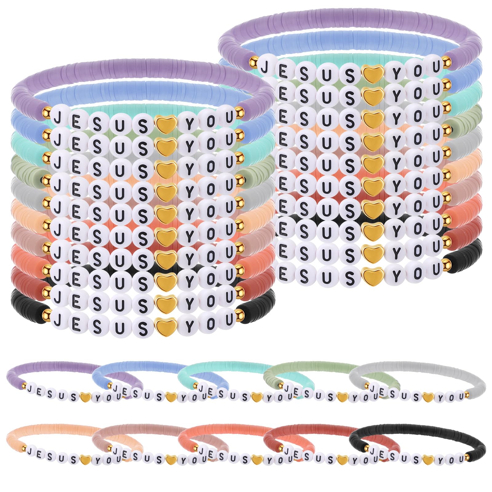 Landical 30 Pcs Jesus Loves You Bracelets Bulk Friendship Bracelets Clay Bead Christian Bracelets for Valentine Kids Religious J