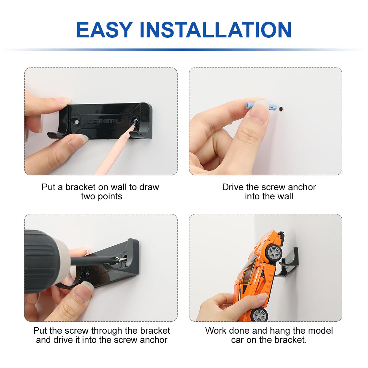 - Q: How do I install the LANMU car wall mount? A: Installation is straightforward; the wall display mounts come with screws and anchors, allowing you to securely attach the bracket to the wall for a stable display of your car collection.