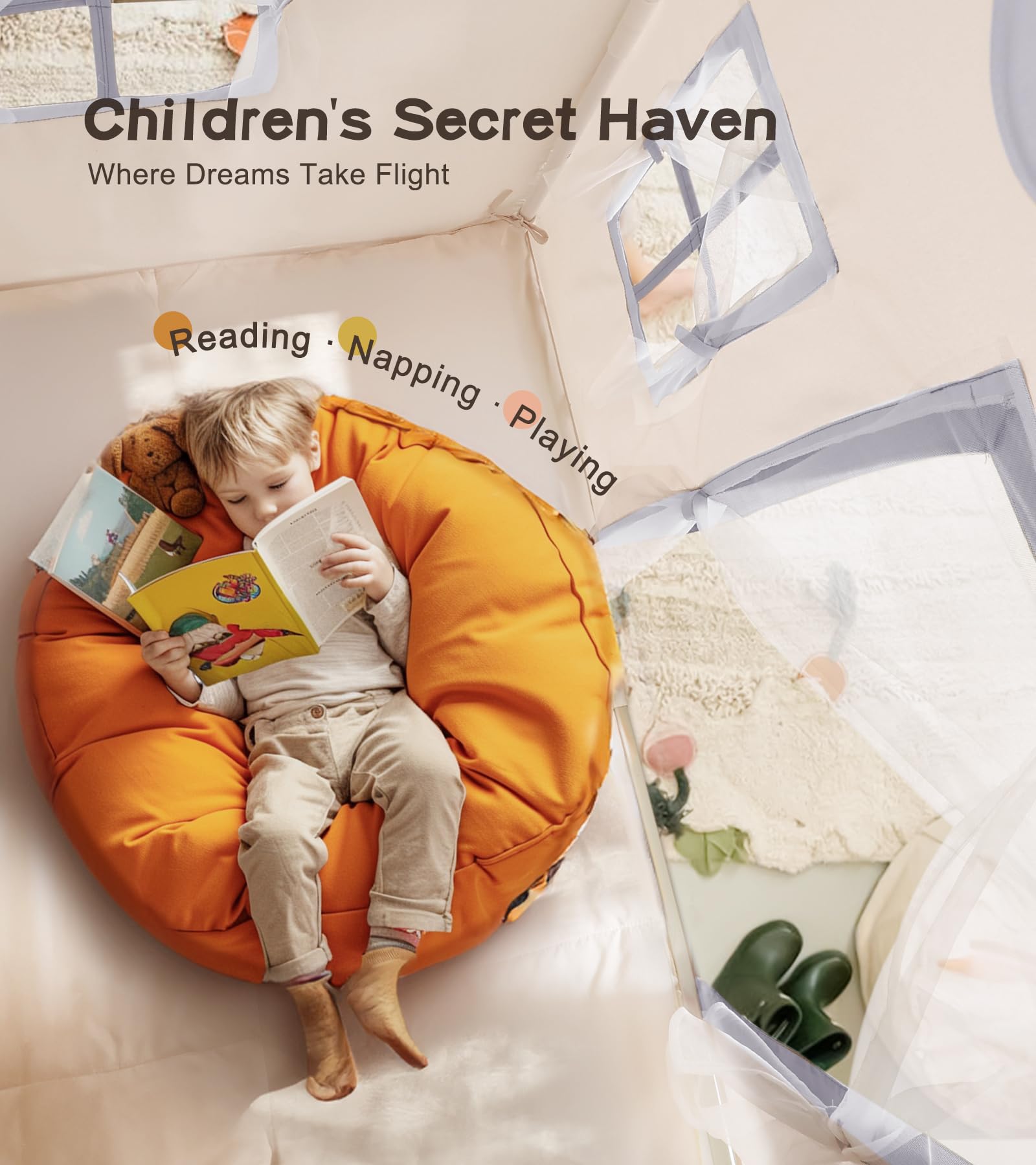 Best kid play tent: The kids play tent has 1 door and 3 windows with curtains, boys and girls can have their own private place for entertaining, reading, playing games and enjoying themselves in the playhouse,which can enrich children's imagination and enhance their creativity.