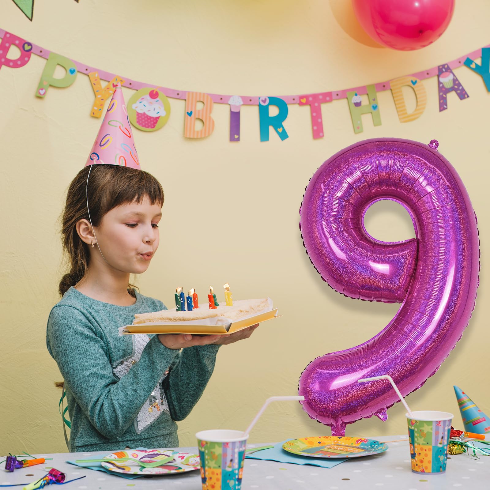 - Q: What is the size of the Laser Hot Pink Number 9 Balloon? A: The Laser Hot Pink Number 9 Balloon measures a stunning 40 inches, making it a standout decoration for any event. Its large size ensures it will be an eye-catching centerpiece at your celebration.