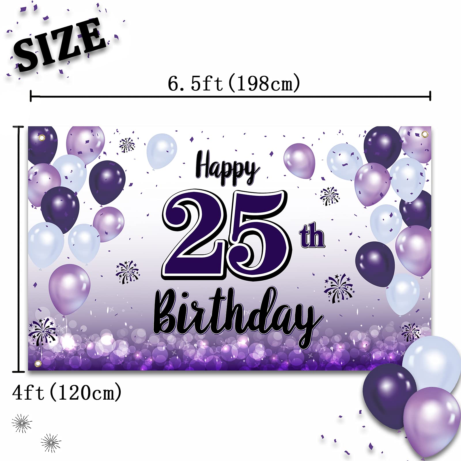 LASKYER Happy 25th Birthday Decorations,25th Purple Balloon Large Birthday Banner Backdrop Sign,25 Years Old Bday Party Supplies