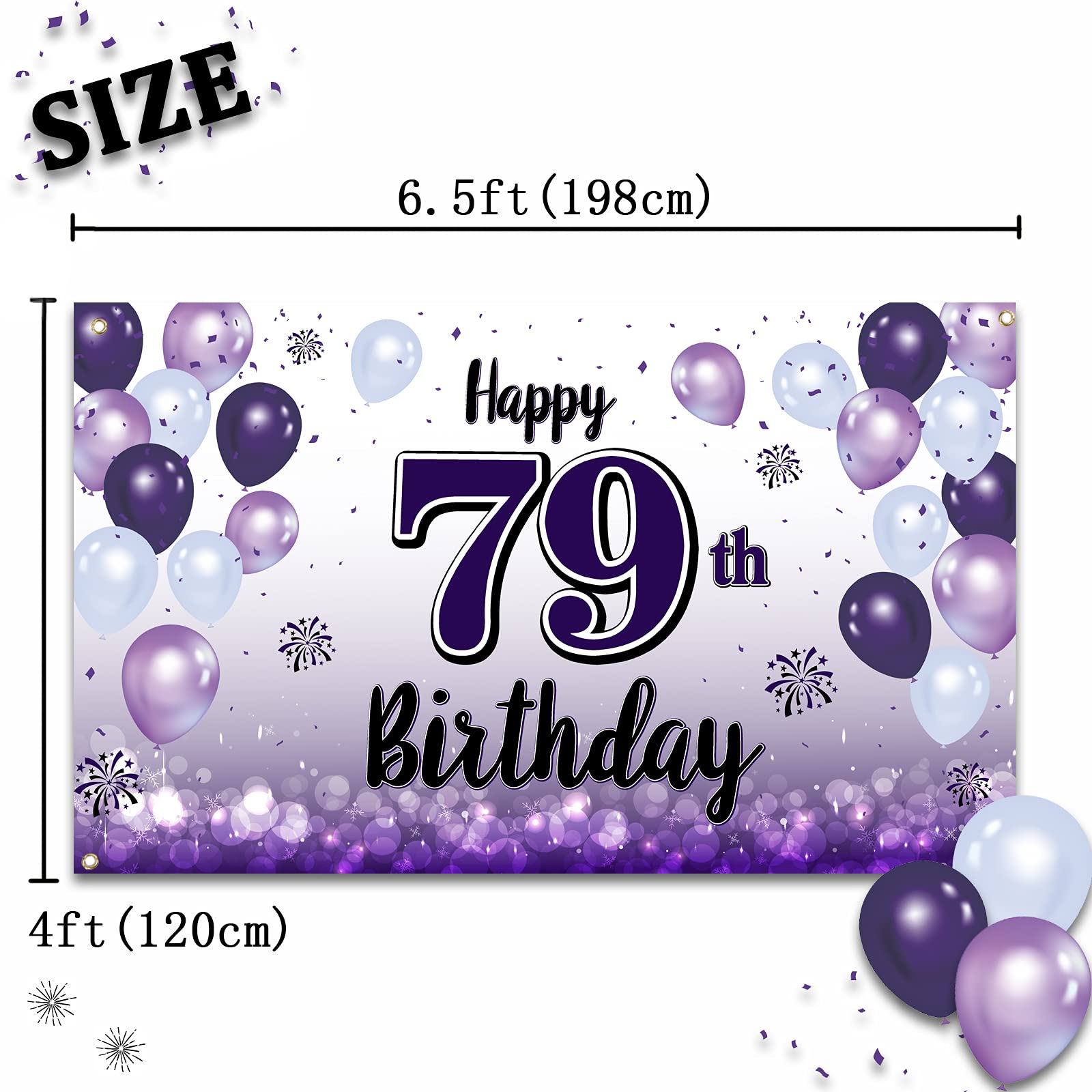 LASKYER Happy 79th Birthday Decorations,79th Purple Balloon Large Birthday Banner Backdrop Sign,79 Years Old Bday Party Supplies
