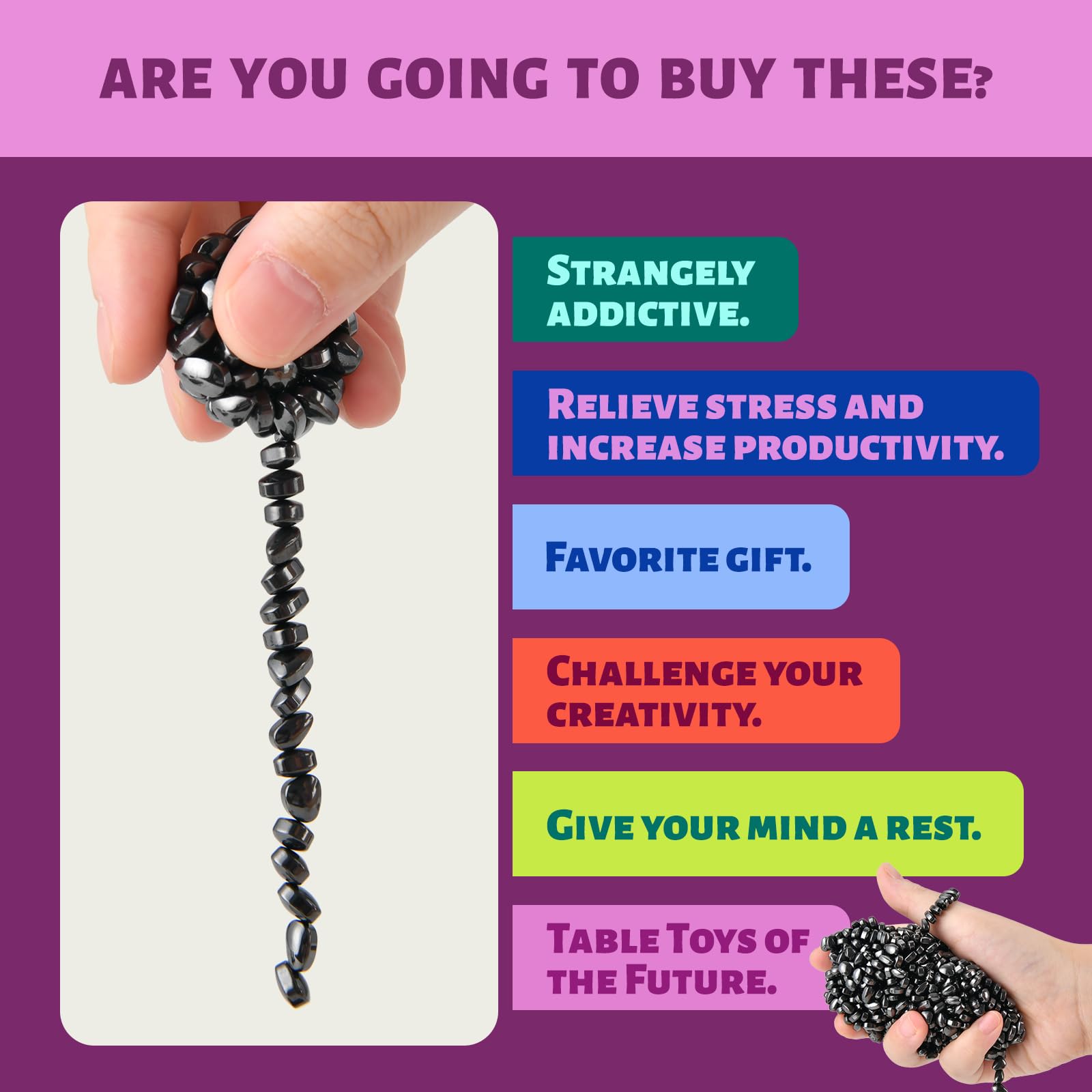 • Q: Can I take this magnetic putty toy on the go? A: Yes, the LCVUUK Ferrite Putty Rocks come in a compact, resealable container, making it convenient to carry and enjoy anywhere, whether at the office or while traveling.