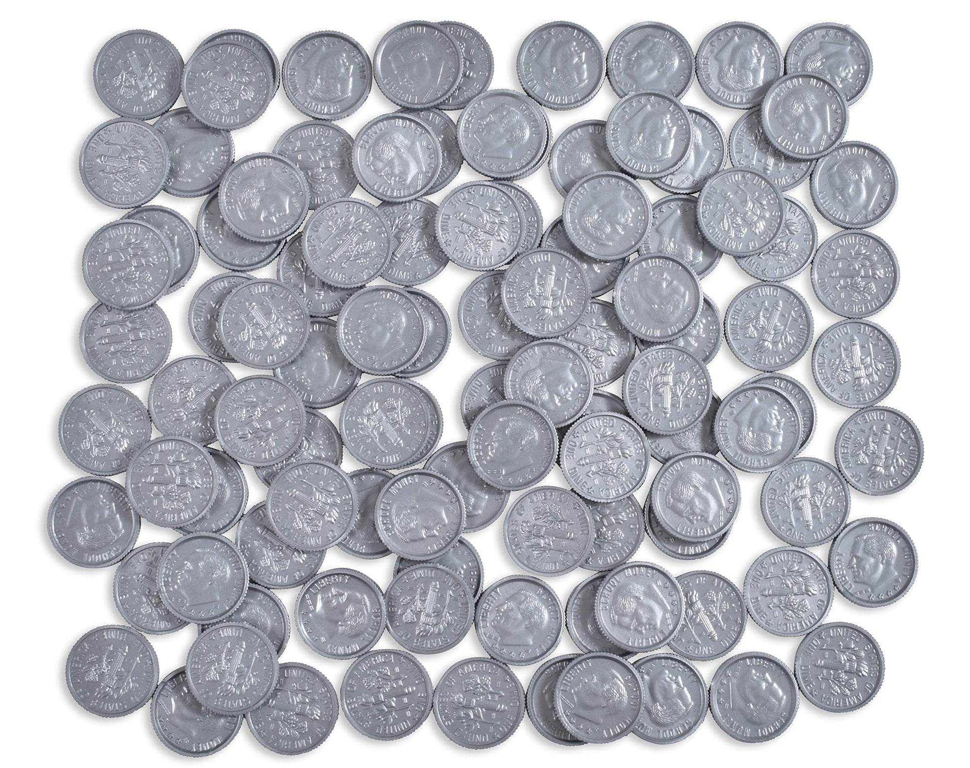 LEARNING ADVANTAGE-7523 Play Dimes - Set of 100 Plastic Coins - Designed and Sized Like Real US Currency - Teach Money Math With