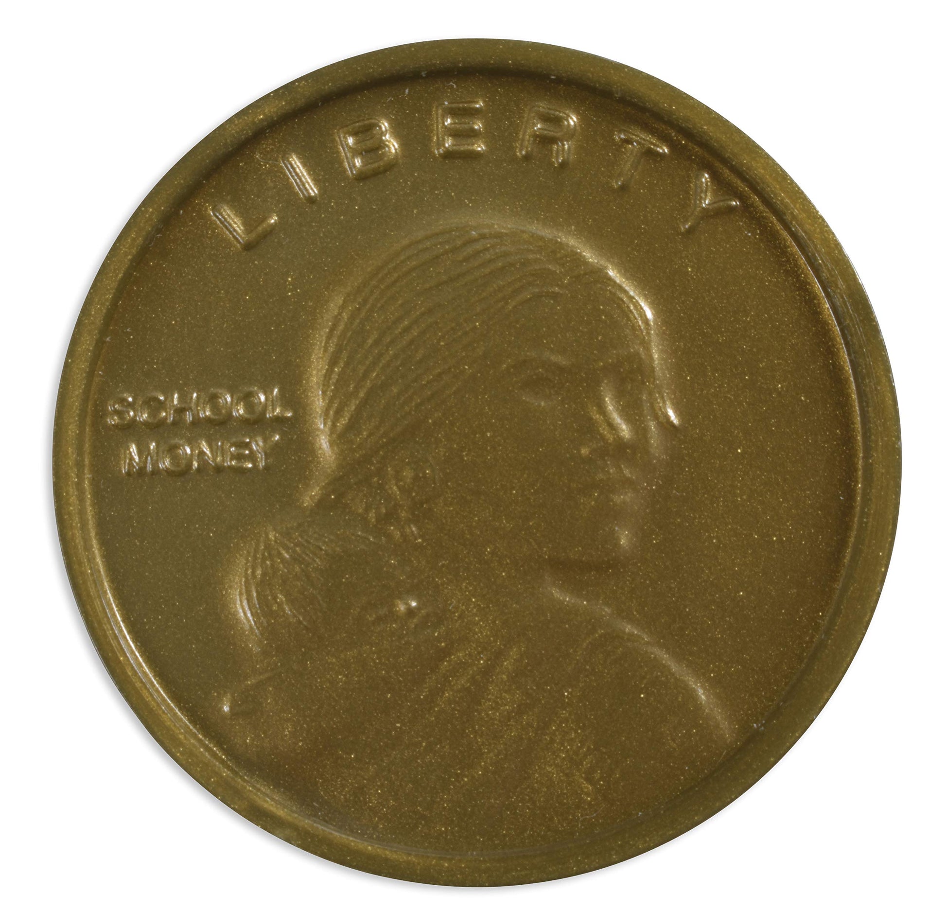 This set of 50 Play Dollars is an essential teaching and playtime resource. These realistic plastic dollar coins feature Sacagawea's face and a gold color. They are also the same size as real dollars! Children can use these coins during pretend play. Or, teach kids how to add, subtract and make change. || Size of one dollar: 1.1'' dia. || Set includes: 50 play dollars.