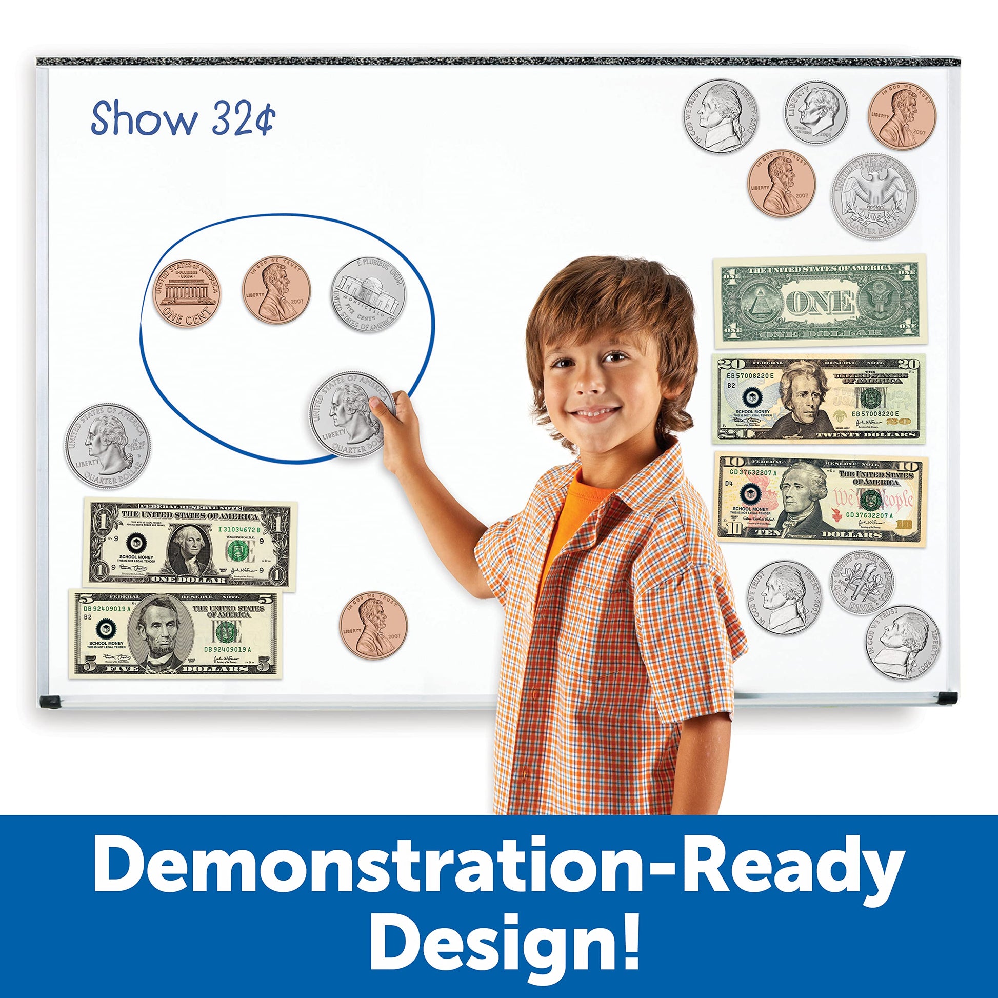 - Q: Are the images on the magnetic money realistic and detailed? A: Yes, the magnetic money features large, realistically-detailed images of coins and bills on both sides, helping students to easily identify and differentiate between different denominations.