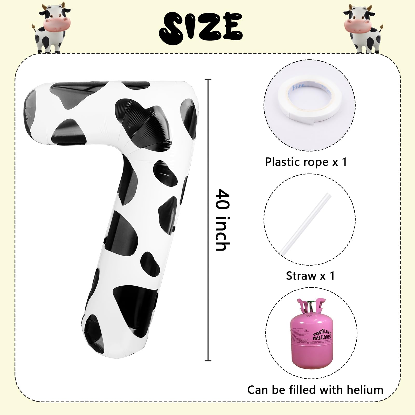 Lebery Cow Print Number Balloon 40 Inch Cow Print Number 7 Balloon Cowgirl Theme Number Balloon For 7Th Birthday Party Cow Balloons Black White Number 7 Foil Balloon For Farm Barn Animal Decor