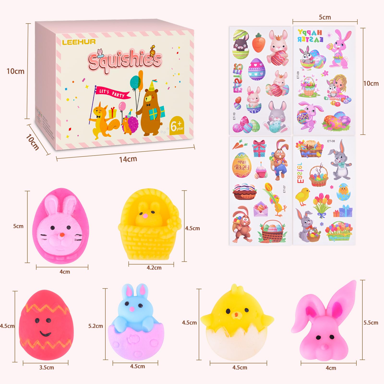 ?Super Value Easter Gift Pack? You can get 30pcs Easter squishy toys Easter theme toys like bunny flower chick eggs rabbit and carrot etc .Colourful Easter eggs with squishy toys create a happy atmosphere and exquisite eggs can be hidden anywhere in the home or in the garden to make Easter even more exciting.