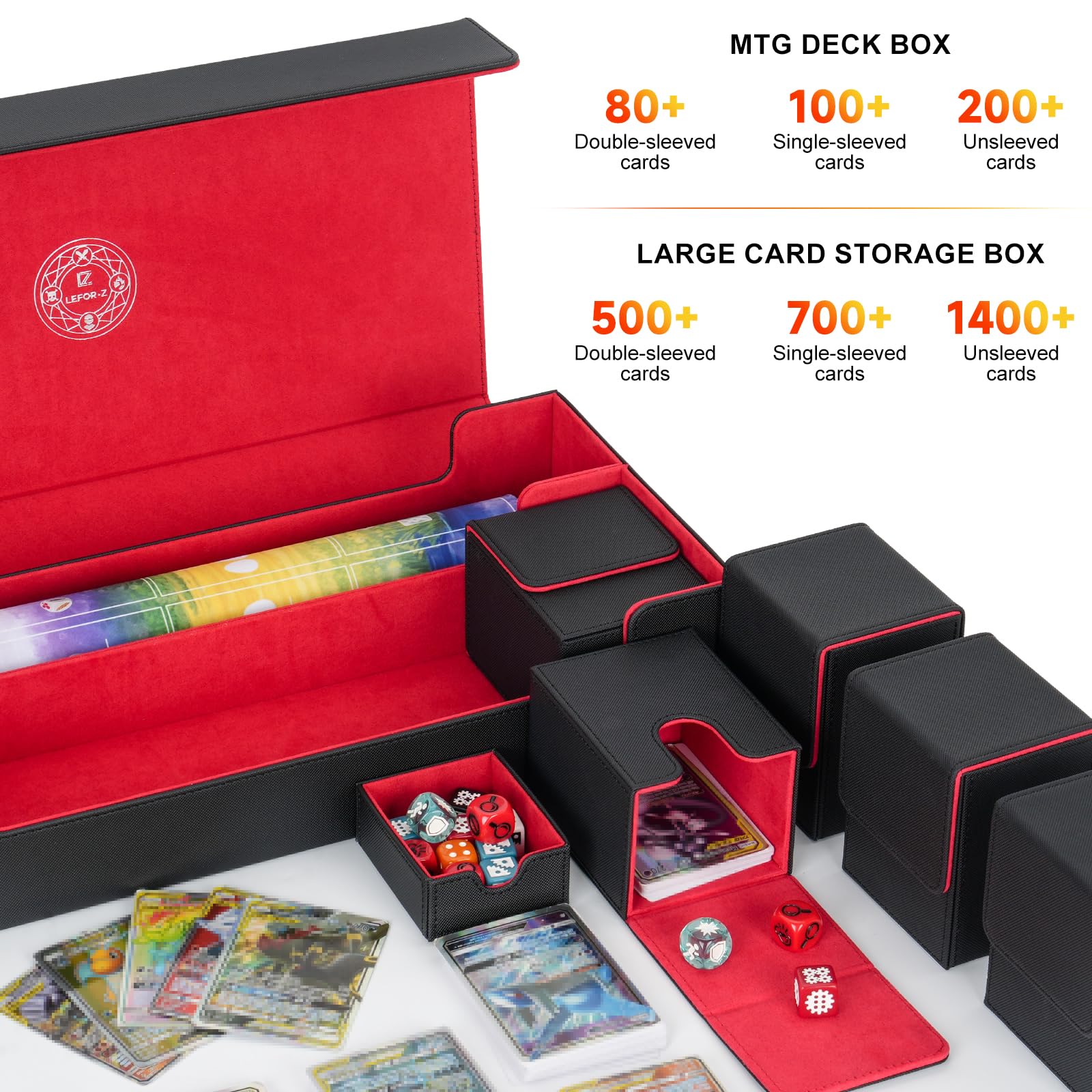 LEFORZ 6 in1 Card Deck Box Set X-Large enhanced Card Game Deck Storage Box with 5 Small Card Deck Case Compatible with MTG/TCG/Yugioh/Magic/Commander(Black&Red)