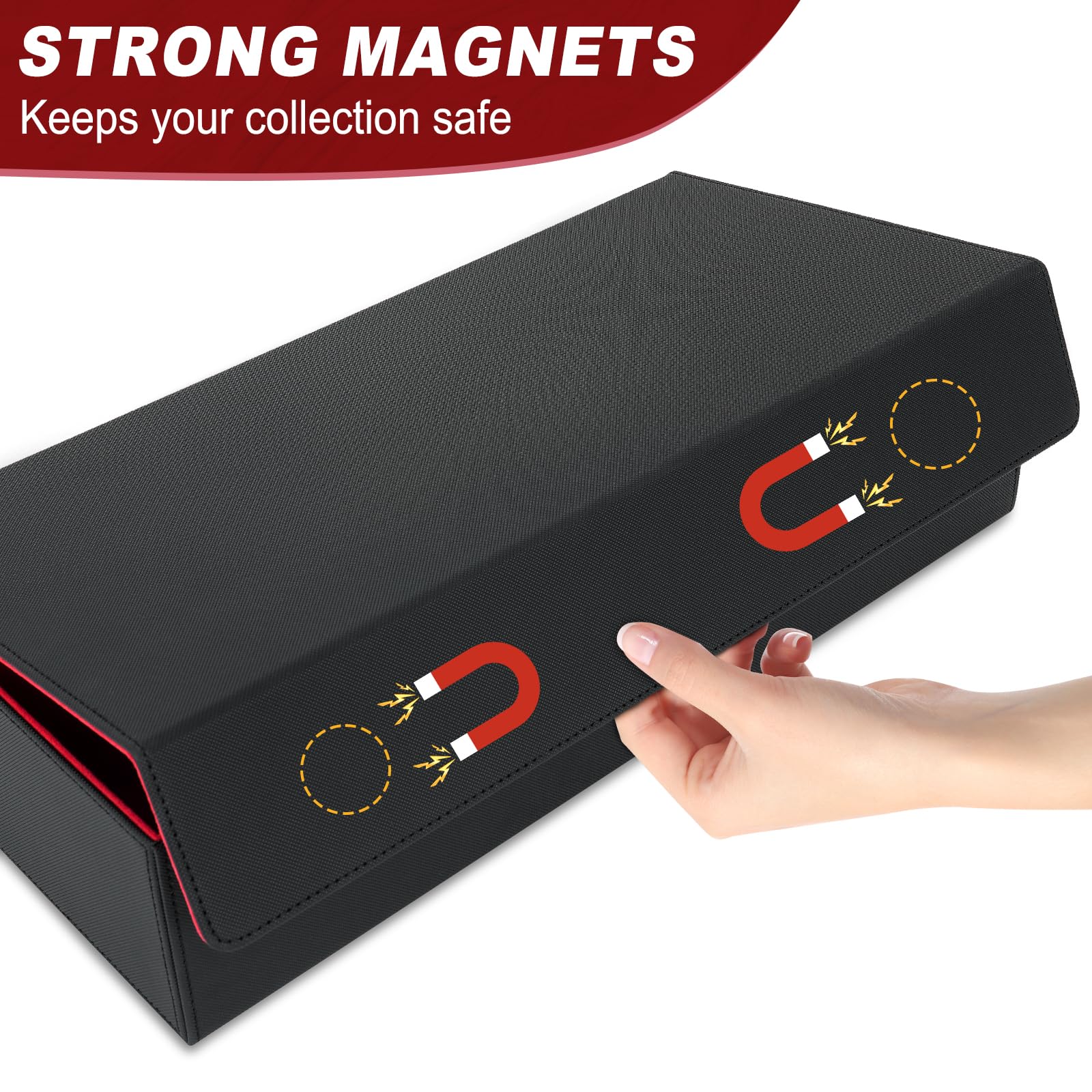 LEFORZ Card Deck Box X-Large enhanced Card Game Deck Storage Box Fits 5 Decks Card Box Card Deck Case Compatible with MTG/TCG/Yugioh/Magic/Commander(Black&Red)