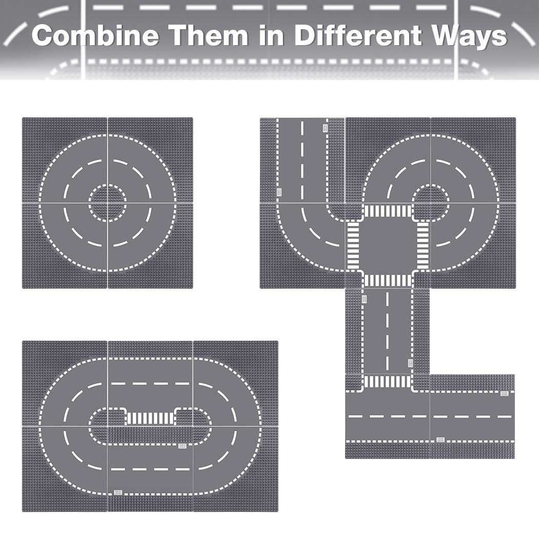 Lekebaby 12 Pack Road Base Plates, 10'X10' City Street Baseplates 100% Compatible With All Major Brands, 4 Curve / 4 T Junction / 3 Straight / 1 Junction