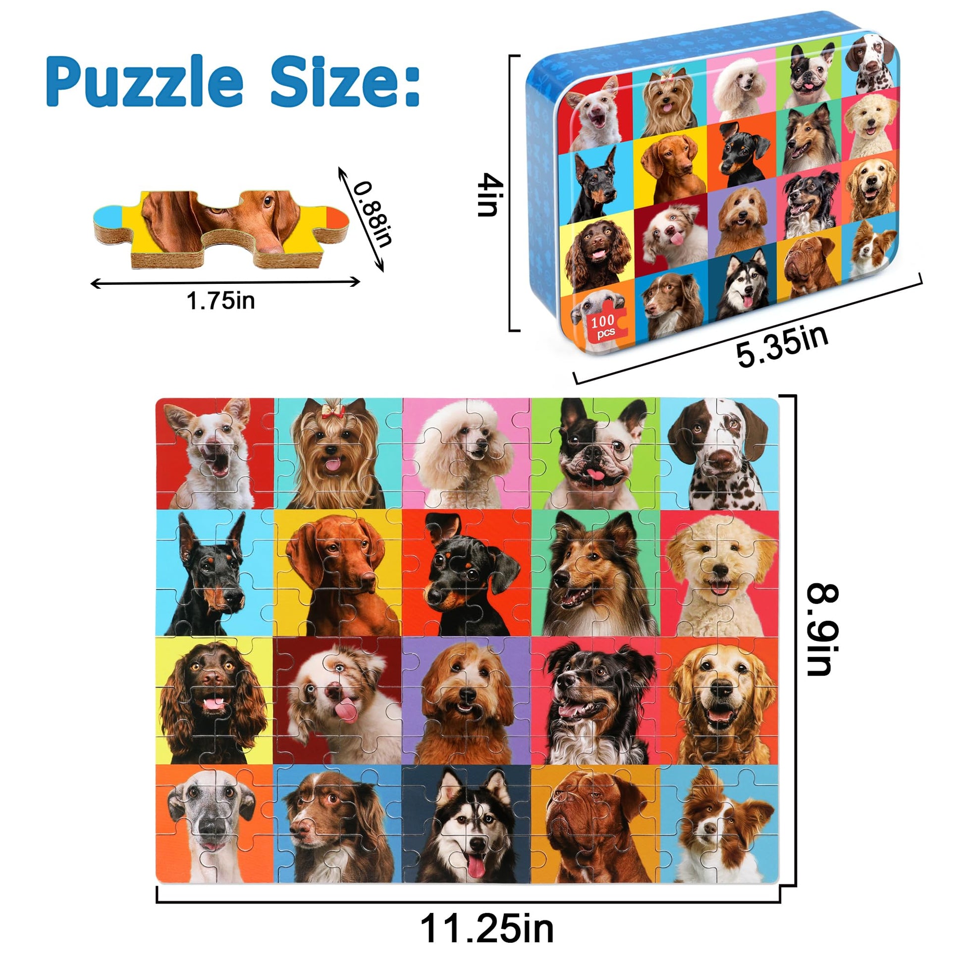 Lelemon Puzzles For Kids Ages 4-6,Dog Puzzle 100 Piece Puzzles For Kids Ages 4-8 In A Metal Box, Educational Kids Puzzles Jigsaw Puzzles 100 Piece Puzzle Games Puzzle Toys For Girls And Boys