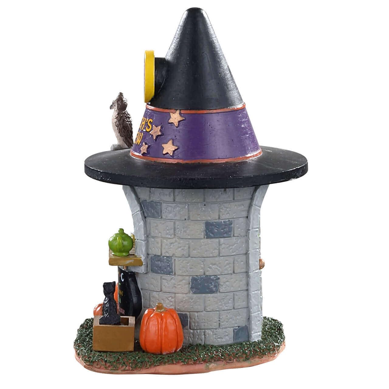 - Q: What are the main features of Lemax Witch's Brew Coffee #03506? A: Lemax Witch's Brew Coffee #03506 is a delightful table accent designed for collectors. Released in 2020, this piece belongs to the Spooky Town village and is crafted from durable polyresin. The whimsical design features a coffee booth resembling a tower castle topped with a large witch hat, adding a unique touch to your Halloween decor.