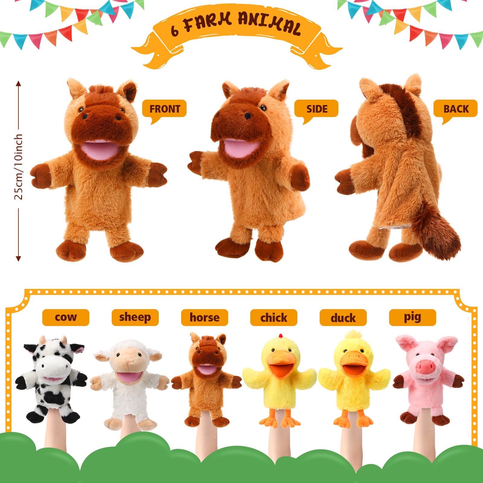 Features: These Cute And Adorable Animal Hand Puppets Are Practical In Many Scenes, Such As Teaching, Role Playing, Bedtime Stories, Families Interaction And More. The Hand Puppet Is Designed With An Open Mouth, And The Mouth Can Move Freely, This Design Makes These Hand Puppets More Active, Natural And Interesting. Specifications: Size: About 10 Inches/ 25 Cm Package Includes: 6 X Animal Hand Puppets Notes: Manual Measurement, Please Allow Slight Errors On Size. The Color May Exist A Slight Difference Due To Different Screen Displays. Suitable For People Over 6 Years Old.
