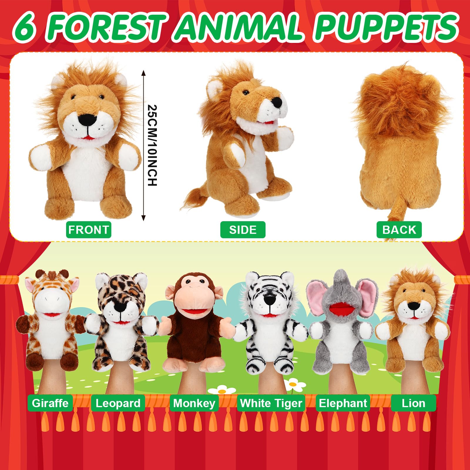 Lenwen 6 Pcs Valentines Day Gifts For Kids Hand Puppets Bulk With Working Mouth 10 Inches Plush Animal Hand Puppet Toddler Plush Toys For Classroom Exchange Gift Birthday Party Favor(Forest Animal)