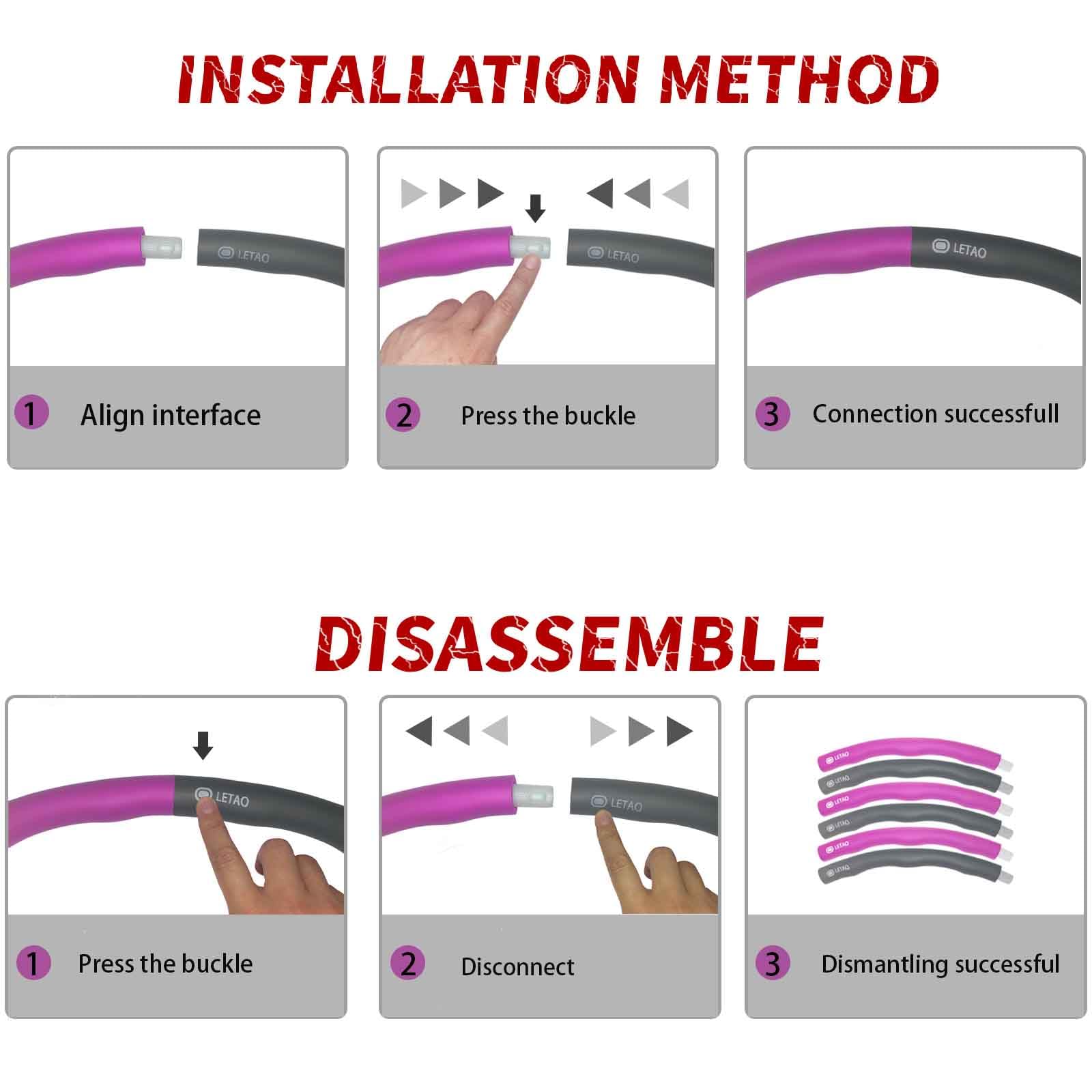 LETAO Fitness Hoop for Kids Ages 3-8 | Rose-Gray Fitness Hoop for Kids, can be dismantled, Including Electronic Instructions