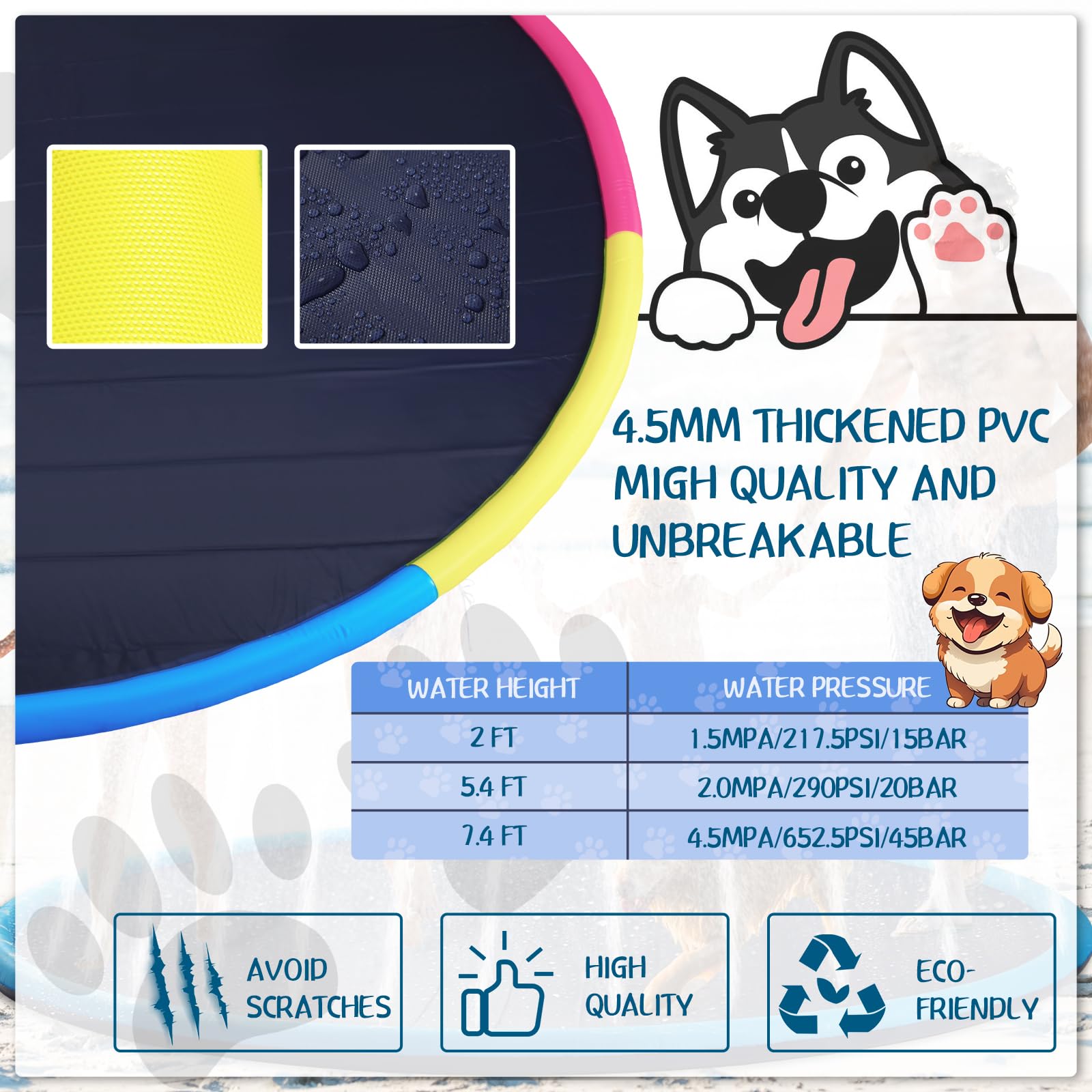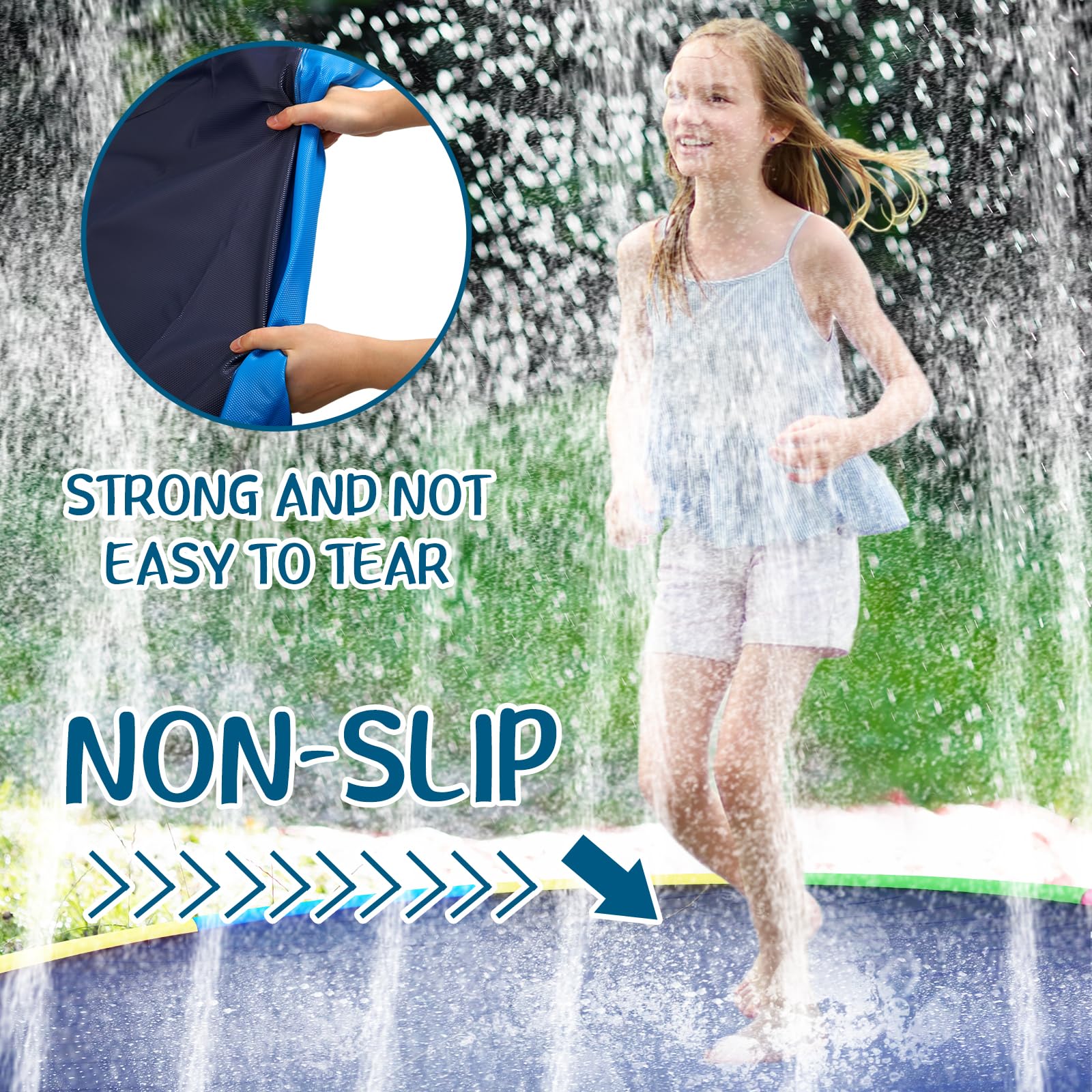 Features: Vibrant look: Bold bright colors brilliantly capture the essence of summer in the design of the water play toys. The color scheme is not only appealing visually but also serves to enhance safety by being easily visible during outdoor use. It adds a colorful splash to your pool time making each moment enjoyable. Nice usability: Whether it's pool splashing fun or outdoor enjoyment under the sun our outside play mat set is a nice fit for diverse environmental settings. You can even make your family pet dog part of the fun adding an extra layer of joy to your amusement time. Specifications: Material: PVC Color: as shown Size: 8 ft Package includes: 1 x Non slip splash pad Notes: Manual measurement please allow slight errors on size. The color may exist a slight difference due to different screen displays.