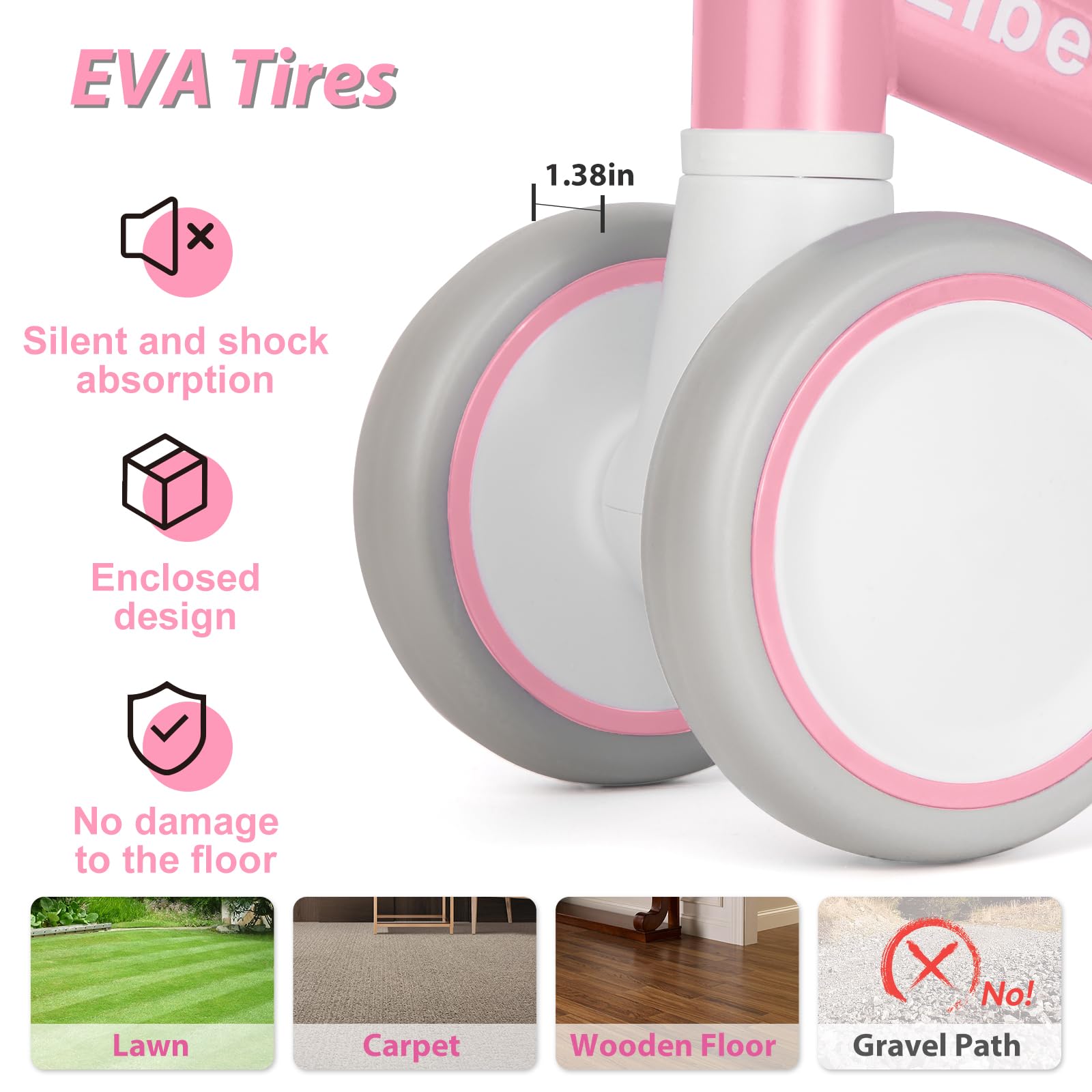 Liberry Baby Balance Bike Is A Great Choice For Baby'S First Birthday Gift. Our Toddler Balance Bike Is Made Of Rubber Handlebars, A Pvc Seat And A Steel Frame, Which Is More Durable And Safer For Your Kids. Besides, Adjustable Seat Is Convenient For Beginners To Adjust To The Appropriate Height ( 9.7-11In ). This Balance Bike Is Recommended To Boys And Girls 1 2 Years Old. Use Our Popular Bike Balance Trainer To Help Your Children Learn Their First Basic Skills By Exercising Their Balance While Playing. The Four-Wheel Structure Is Designed For Toddlers To Make The Bicycle More Stable. Beginners Can Quickly Learn To Ride On, Which Gives Them An Incredible Sense Of Accomplishment And Confidence To Challenge New Things. A Bike Trainer Is An Ideal Transitional Toy When The Baby Is Learning To Walk.