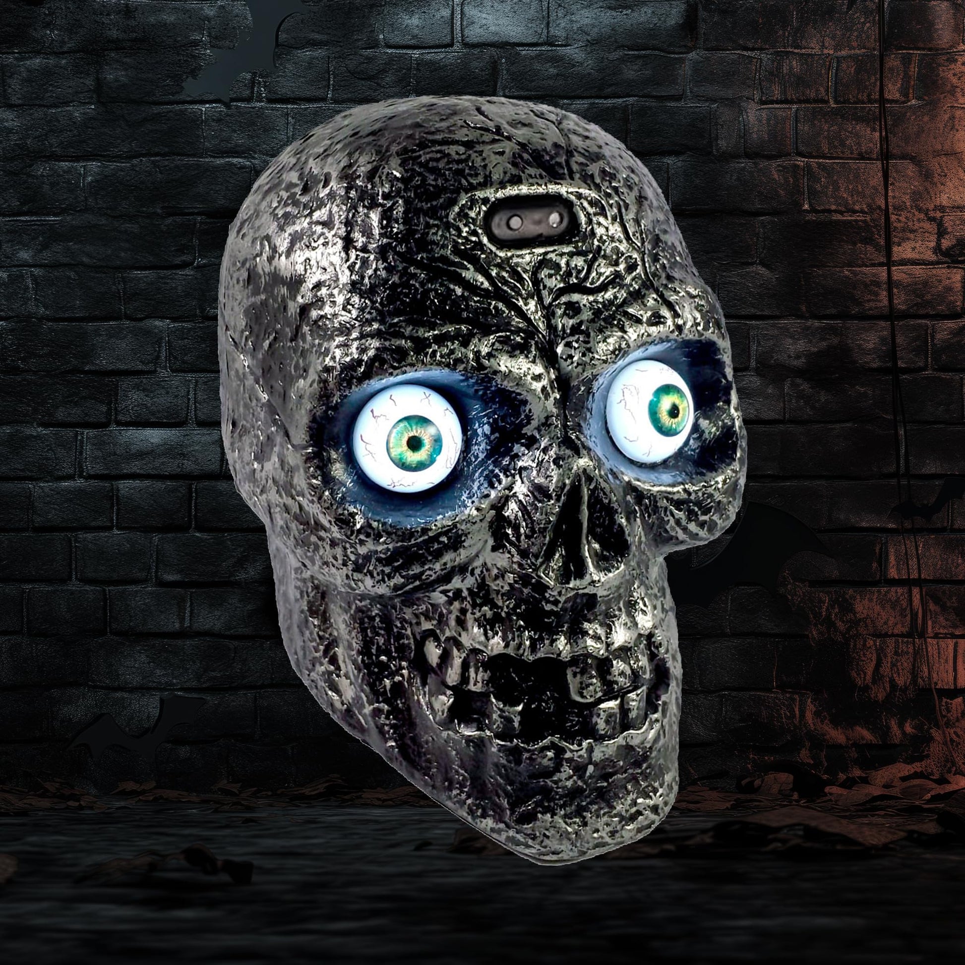 - Q: What kind of phrases does the skull say? A: The skull emits a variety of eerie phrases, including chilling lines like 'help me...help me!' and 'we've been waiting for you...!!' These sound effects enhance the spooky atmosphere of your Halloween party or haunted house.