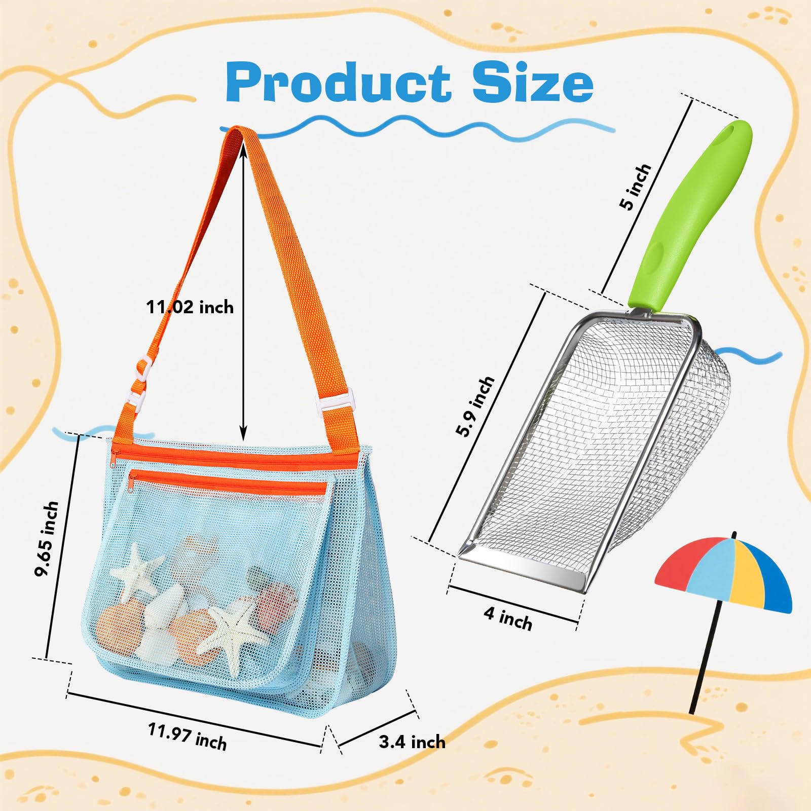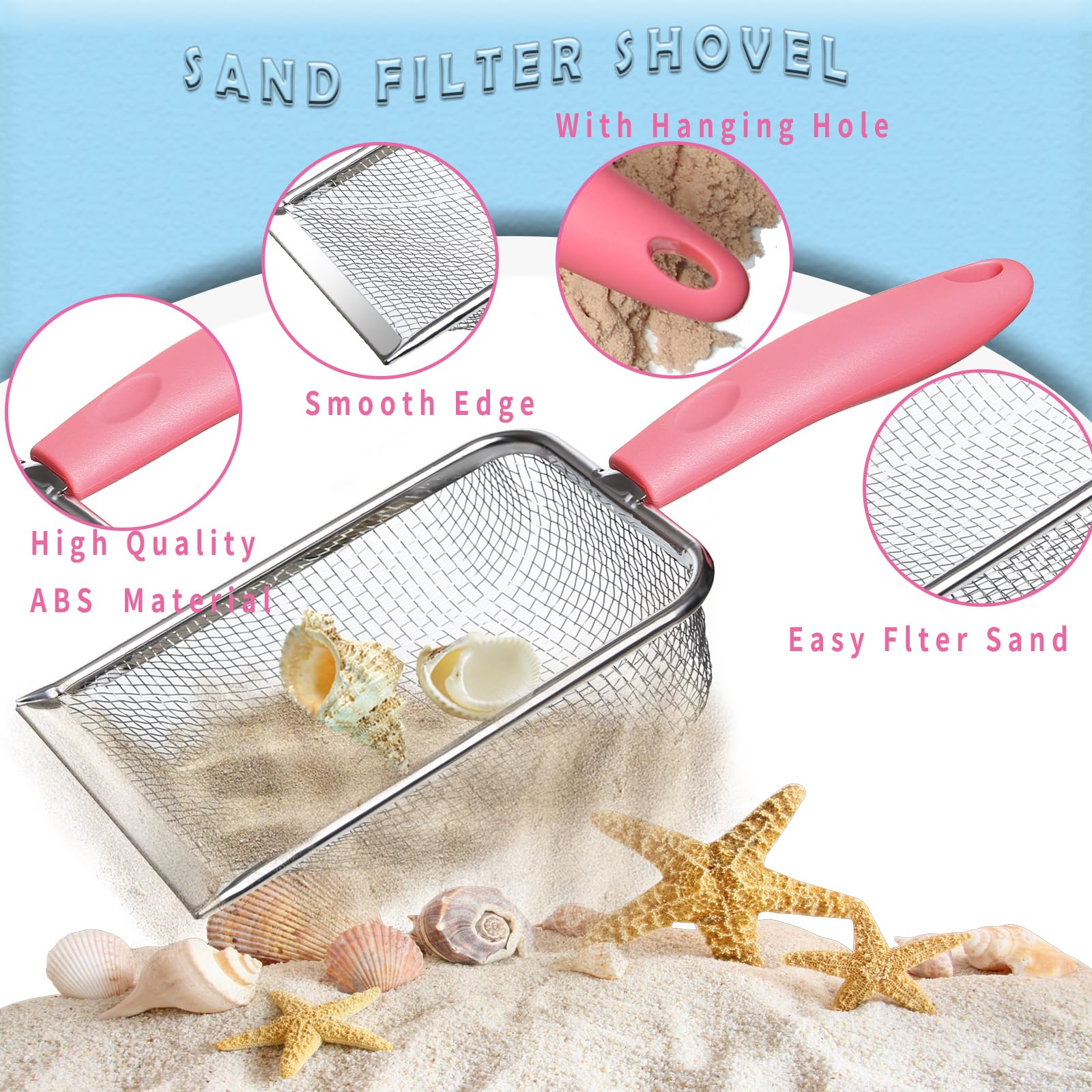 FAVORITE FOR SHELL COLLECTORS: Children who like to collect shells can have fun on the beach. The mesh beach shovel filters the sand, finds the shells hidden in the sand, and stores them in the mesh beach bag so you don't have to worry about losing the ''treasures'' you've explored.