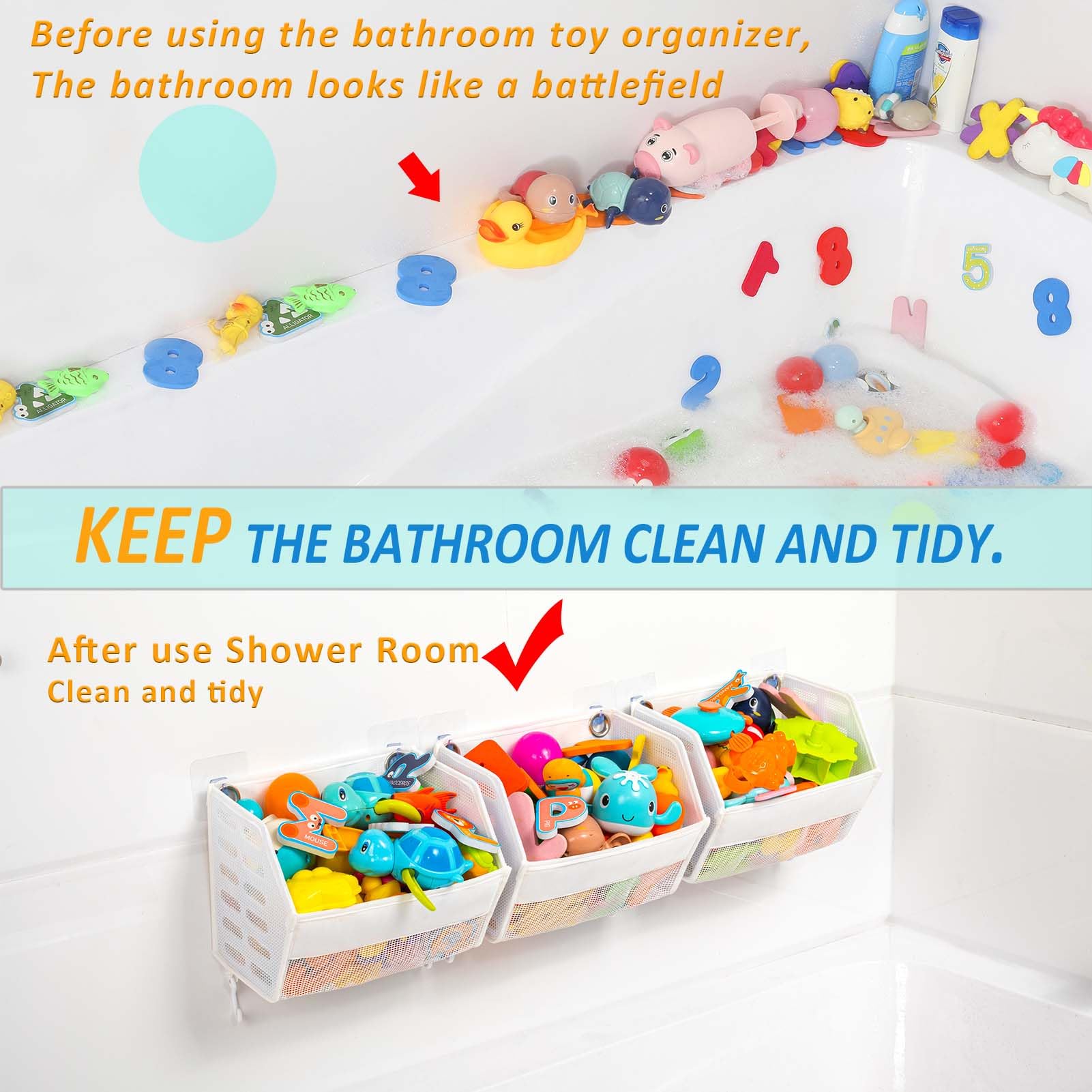 Ligereza Bath Toy Holder 3 Piece Set, Free Arrangement Bath Toy Organizer, Multi-Functional Bathtub Toy Holder, Quickly Fish Out Bath Toy, Bath Toy Holder For Easily Organise And Sort Toys