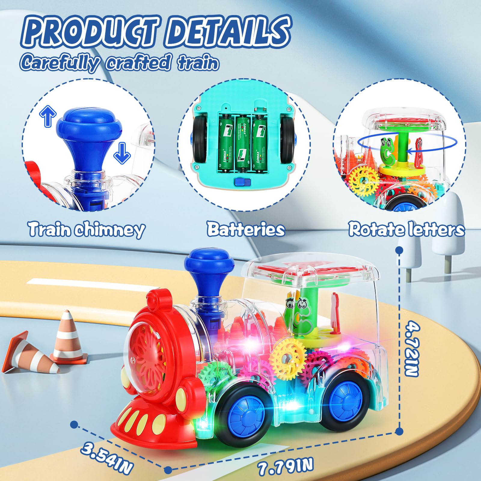 Light Up Train Toys,Fun Electric Transparent Gear Sensory Toy For Kids With Colorful Light Music And Moving Gears,Tummy Time Crawling Baby Toys For Boys Girls