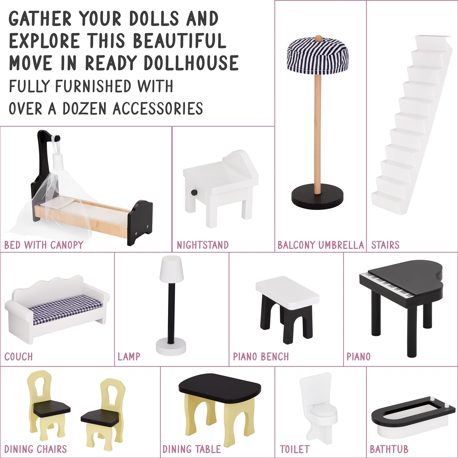 View compareLil' Jumbl Kids Wooden Dollhouse, With Elevator, Balcony & Stairs, Accessories & Furniture Included X-Large 3 Story Easy To Assemble Doll House Toy