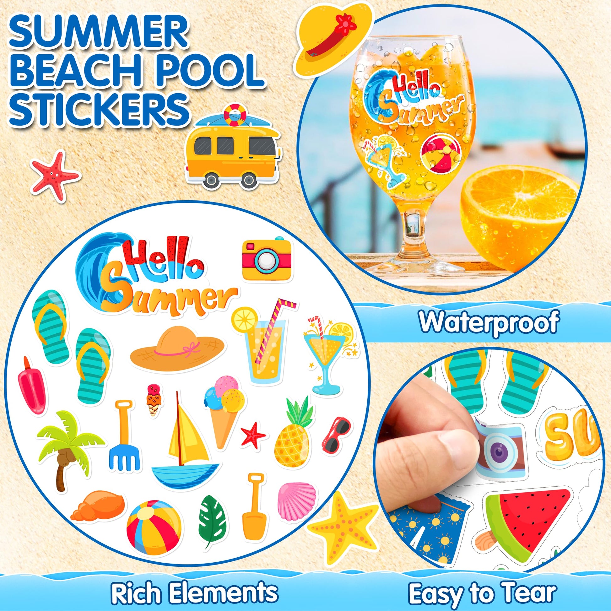 Linaye 24 Sheets Summer Beach Stickers For Kids, 1400 Pcs Beach Vinyl Waterproof Stickers For Scrapbooking,Water Bottles,Envelopes,Laptop, Hawaii Tropical Stickers For Summer Party For Boys Girls