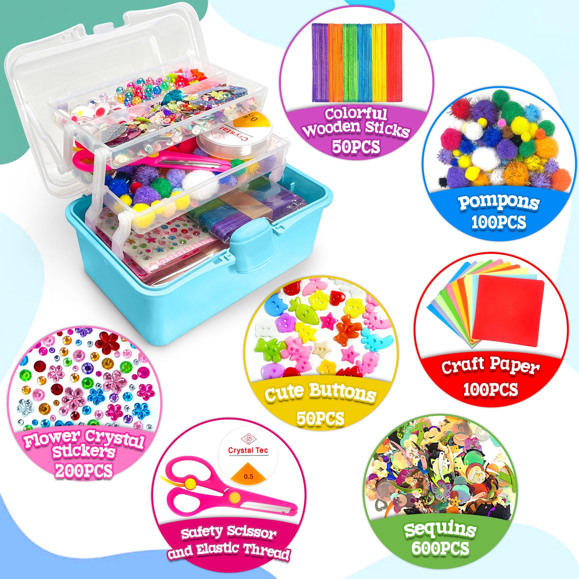 LINAYE 2500+PCS Arts and Crafts Supplies for Kids, DIY Craft Supplies Kit Box for Ages 6-8, Arts and Crafts Kit for Kids, Crafti