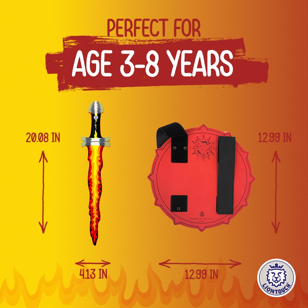 Liontouch - Fantasy Fire Flame Set | Foam decorative replica blade & Shield for Kids Age 3-8 Years | Medieval Pretend Play in Roaring Fire Style | Safe Toy & Battle Accessories for Boys Dress Up & Costumes