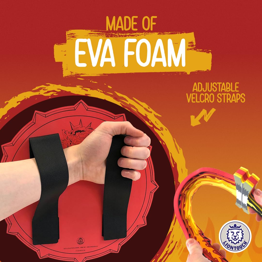 Liontouch Flame Toy decorative replica blade & Shield For Kids Ignite your child's imagination with the Liontouch Flame Toy decorative replica blade & Shield set! Designed for young adventurers aged 3 and up this fiery duo promises endless hours of pretend play in the world of medieval fantasy. A Blaze of Adventure: Crafted with precision and attention to detail the decorative replica blade and shield carry a roaring fire theme that captures the very essence of a fierce blazing battle. As children wield these they can imagine themselves as courageous knights defending their kingdoms from dragons or rival factions. Crafted for Safety: While the Flame set sparks wild imaginations parents can rest assured about their children's safety. Made from well-made flexible EVA foam both the decorative replica blade and shield are soft to the touch yet durable enough to withstand the rigors of play. With no hard edges or corners these toys are designed to minimize any potential harm. Enhanced Play Experience: Beyond solo adventures this set is perfect for group play themed parties school events and more. Whether your child wants to dress up for a special event or simply enjoy a backyard quest with friends the Flame decorative replica blade & Shield set is the perfect companion. Cultivating Skills: While children immerse themselves in imaginative play they're also developing essential skills. Role-playing enhances creativity social skills and problem-solving abilities. Furthermore physical play with the decorative replica blade and shield can help improve motor skills and coordination. Quality and Commitment: At Liontouch we are committed to providing toys that merge fun with quality and safety. Every piece we produce is tested rigorously to ensure it meets international safety standards. Dive into a world where roaring fires meet valiant knights! With the Liontouch Flame Toy decorative replica blade & Shield every playtime becomes an epic adventure.