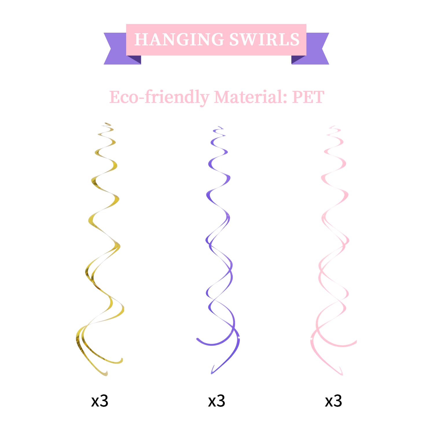 Whats in the pack of part decorations Happy Birthday Banner Banner Quantity:13 Pcs Size: 15 x 12 cm/5.9 x 4.7 Banner color: Pink, Green, White Easy to hang them on the wall, No DIY,above the table, in the hallway and on the tree. Honeycomb Balls Size and Quantity: 2 x 5.9 Ivory 2 x 5.9 Green 2 x 5.9 Orange 2 x 5.9 Pink Material: Paper Dot Garland Size: 79 / 200 cm Spiral Hanging Decorations Quantity: 9 piece Diameter: 13 cm Material: PET