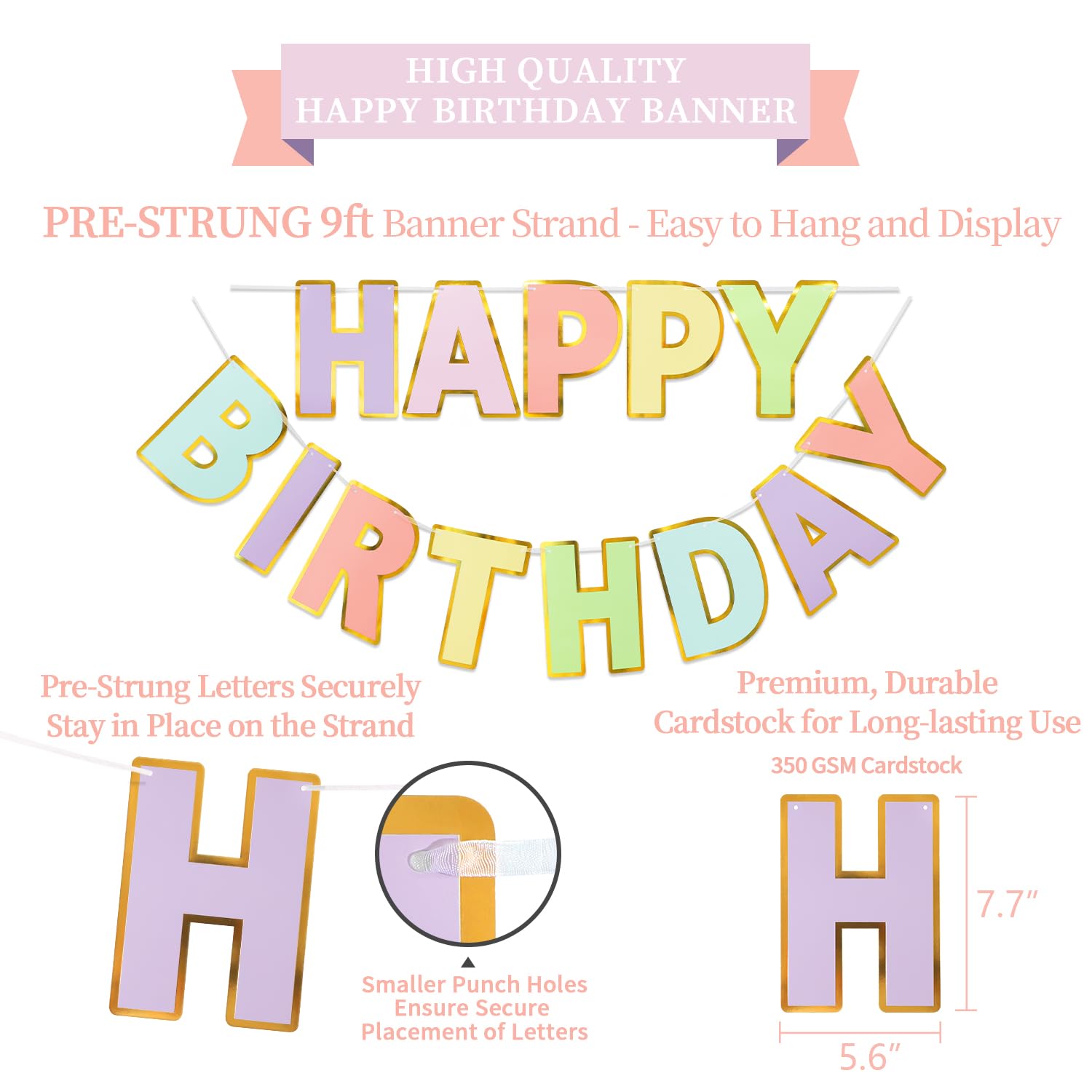 LITAUS, Birthday Decorations, NO DIY - Pack of 17 | Macaron Happy Birthday Banner, Honeycomb Balls, Swirls, Garland | Happy Birt