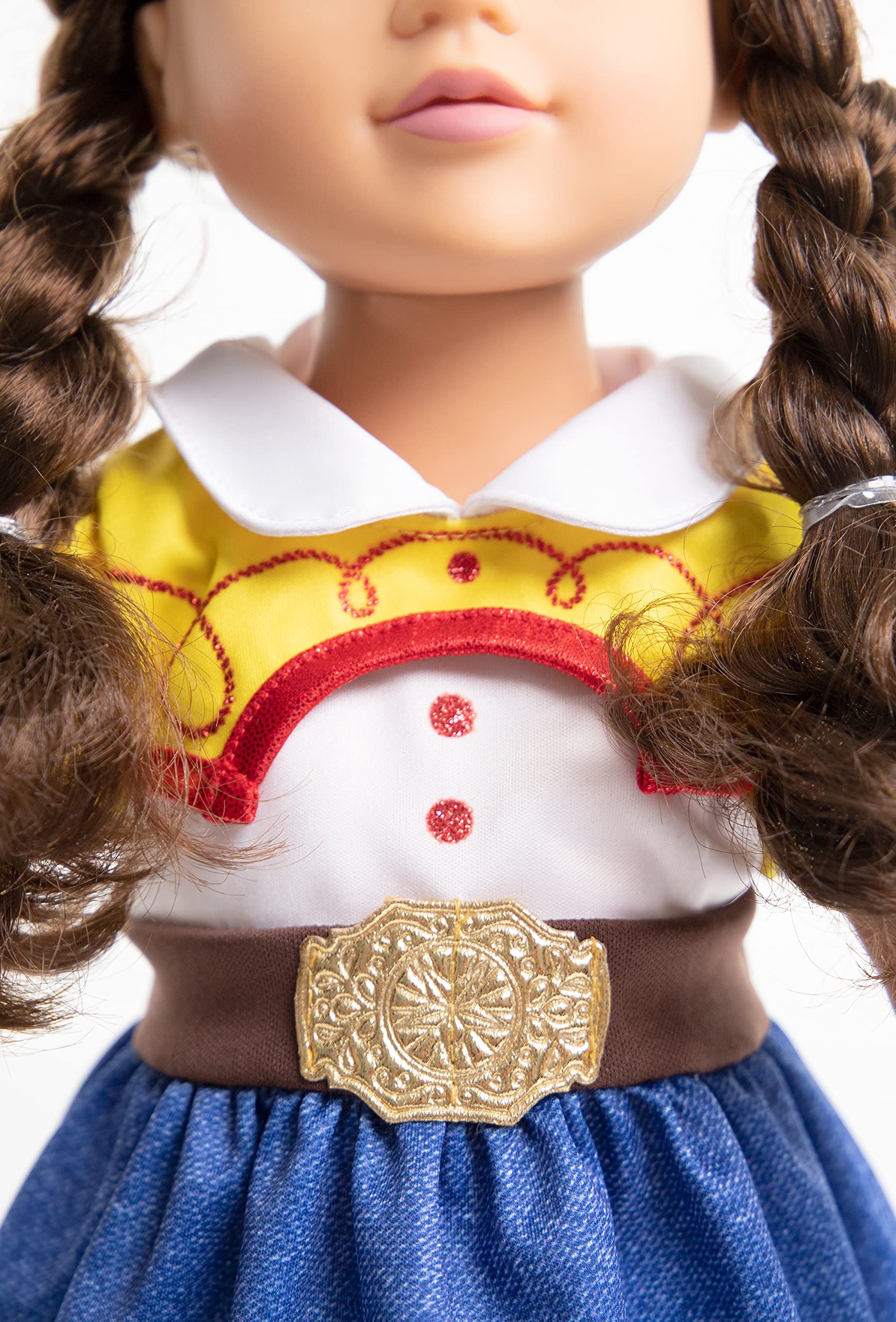 • Q: What materials are used in the Cowgirl Doll Clothes? A: The Cowgirl Doll Clothes are made from a cotton blend, ensuring comfort and durability for hours of pretend play.