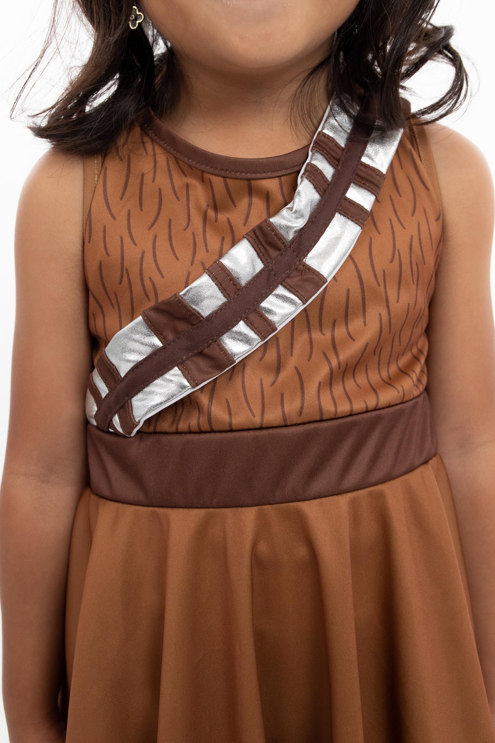 This Galactic Fuzzball Twirl Dress will transform your child into a fearless adventurer, ready to take on the galaxy and twirl the day away! Designed for twirling - cut from a full circle of fabric which allows it to billow out as your little one spins and dances. Bodice with ''fur'' printed design and matching knit skirt. Sewn on silver bandolier. (Accessories sold separately). There are no itchy underskirts and fabrics, and it comes with completely finished seams and hems. There are no buttons or zippers to frustrate little fingers, and best of all, its machine washable! Do you have a little princess that loves tea parties, dancing, baby dolls and wearing princess dresses, but can't stand the itchy, uncomfortable fabrics or seams? Or is your princess the industrial type - preferring water fights to tea parties, running over walking, and living in their dress ups, but can outplay any princess dresses available? Then Little Adventures is your answer. Designed by two moms, Jenny and Heather, with little prince & princesses of their own - Little Adventures products are DRESS UPS MADE FOR EVERYDAY PLAY! Heather and Jenny were frustrated with the fact that dress ups couldnt be washed. The fabrics would fall apart in the washing machine and many were made to be dry-cleaned only, an absolutely absurd idea for a practical mom. They knew there had to be a better way! So Little Adventures began! (Crown, flower headbands, and other accessories sold separately). COMFORTABLE - WASHABLE - EVERYDAY PLAY - BECAUSE CHILDHOOD IS AN ADVENTURE!!!