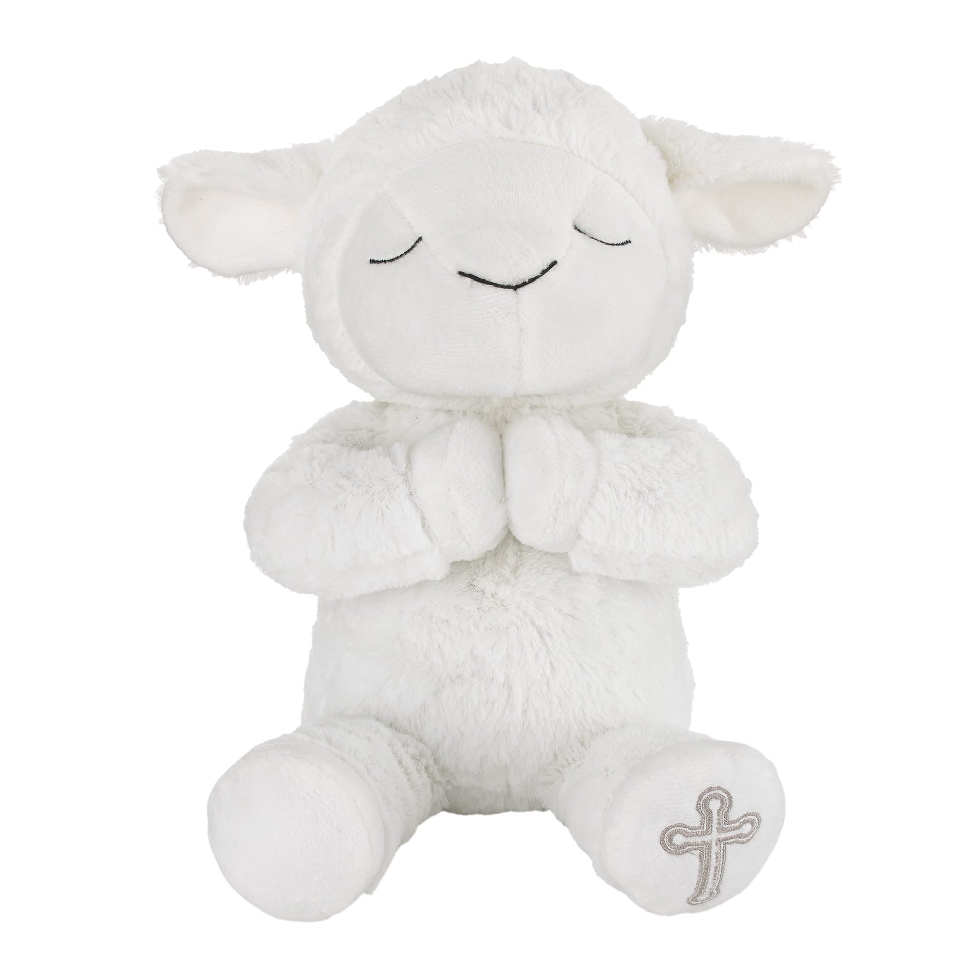 Little Love By Nojo Baptism White Plush Lamb With Praying Hands And Embroidered Cross
