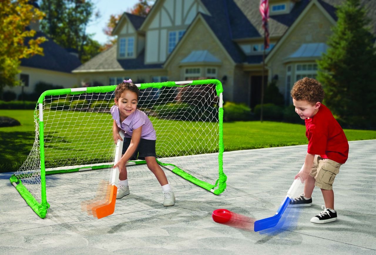 Product DescriptionA hockey set, soccer set and lacrosse set in one. The net easily adjusts both vertically and horizontally. The interchangeable stick heads let you switch from hockey to lacrosse. Kids will have hours of active, energetic fun.Brand StoryBy Little Tikes