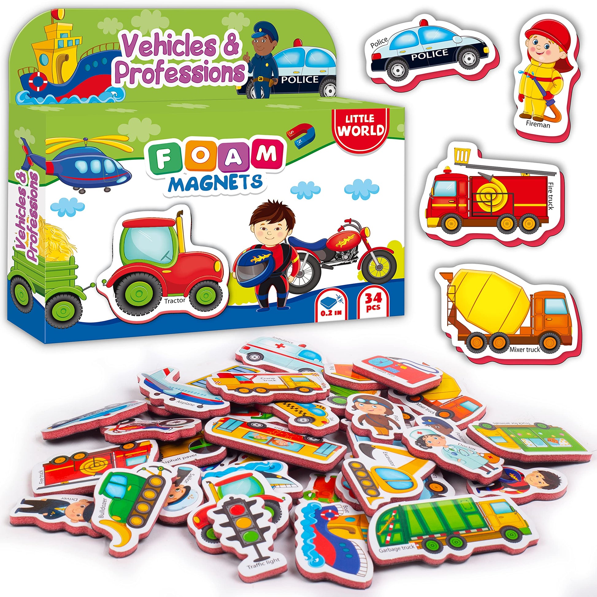 Little World Large Set Of 24 Foam Fridge Magnets For Toddlers 1-3 - Refrigerator Magnets For Kids – Baby Magnets For Refrigerator 1 Year Old - Magnetic Vehicles For Toddlers 1-2 - Child Safe Magnets