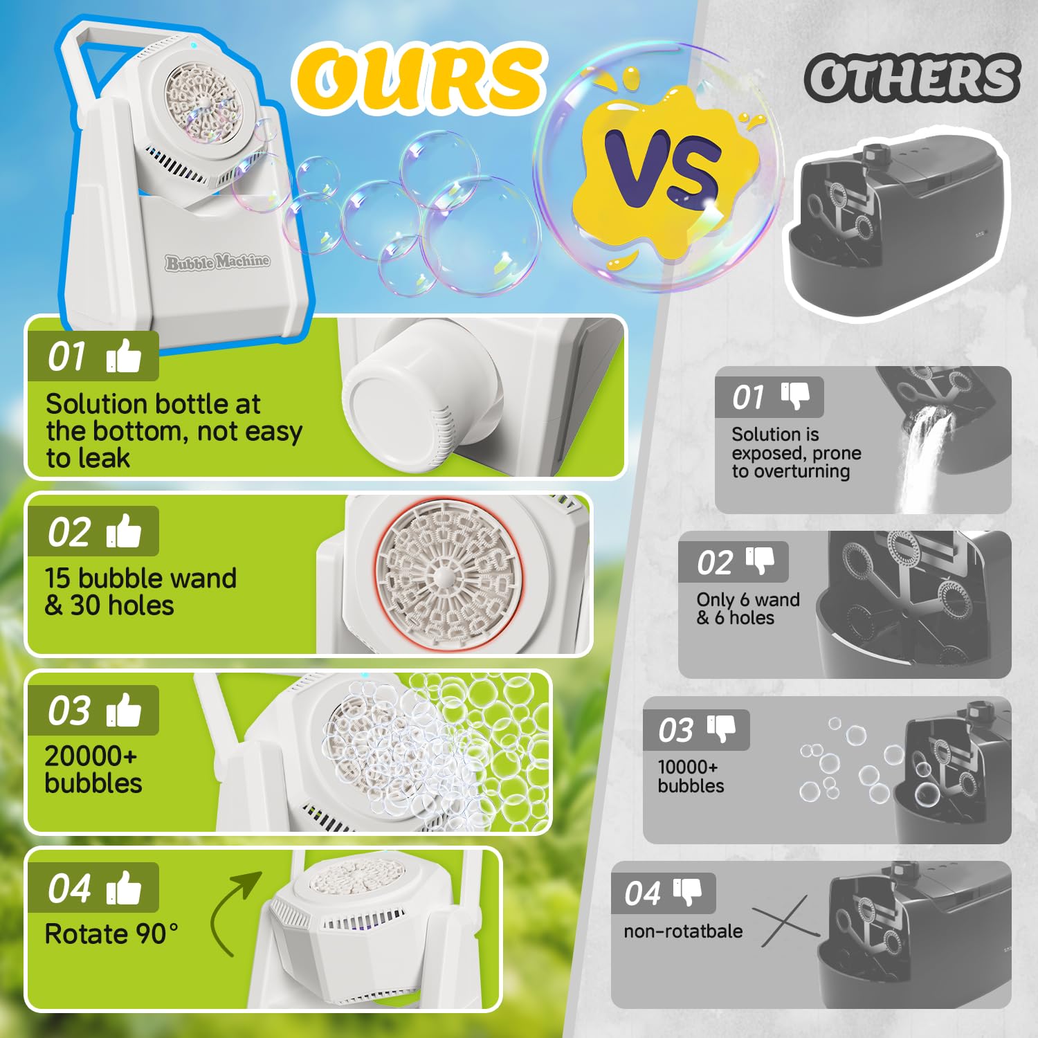 View compareLLESSOO Bubble Machine for Kids Toddlers Parties, Automatic Bubble Blower Machine, Bubble Toys 20000+ Bubbles/Min, Battery Opera