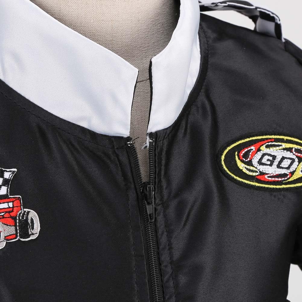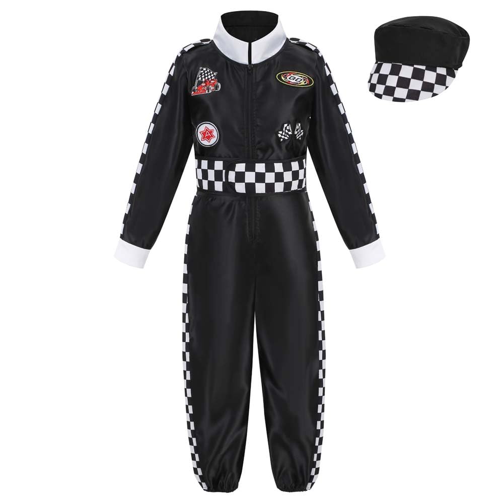 LMYOVE - Kids Race Car Driver Costume for Boys Girls Halloween Racing Role Play Jumpsuit and Car Cap for Toddler 3-9 Years Perfect for theme party, birthday, Christmas party, Halloween, photo prop, race day, costume party, stage performance, role play, etc
