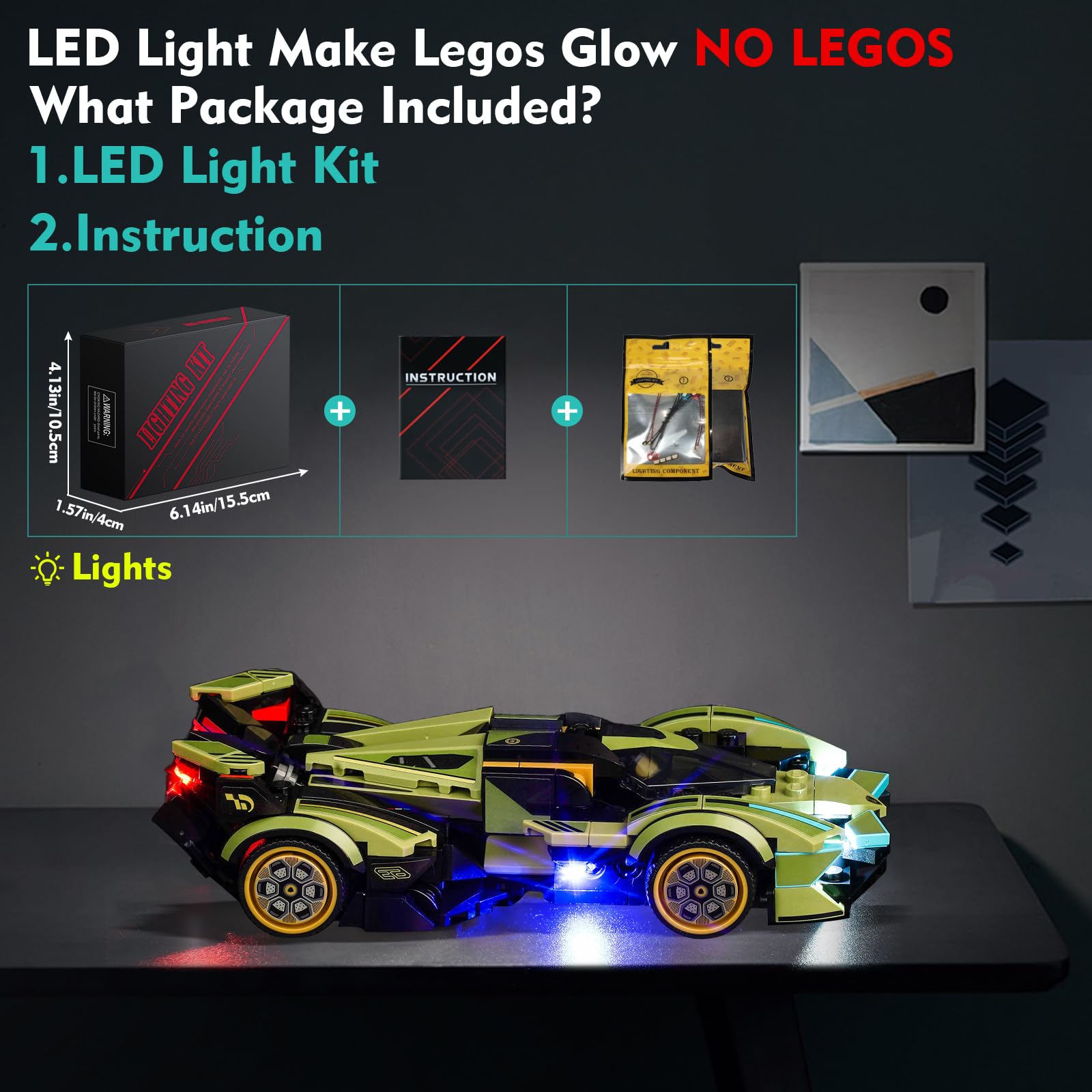 LocoLee LED Light Kit Compatible with Lego 76923 Lamborghini Lambo V12 Vision GT Super Car - No Models Only Light, Creative Lighting Set Accessories Compatible with Lego 76923 Set
