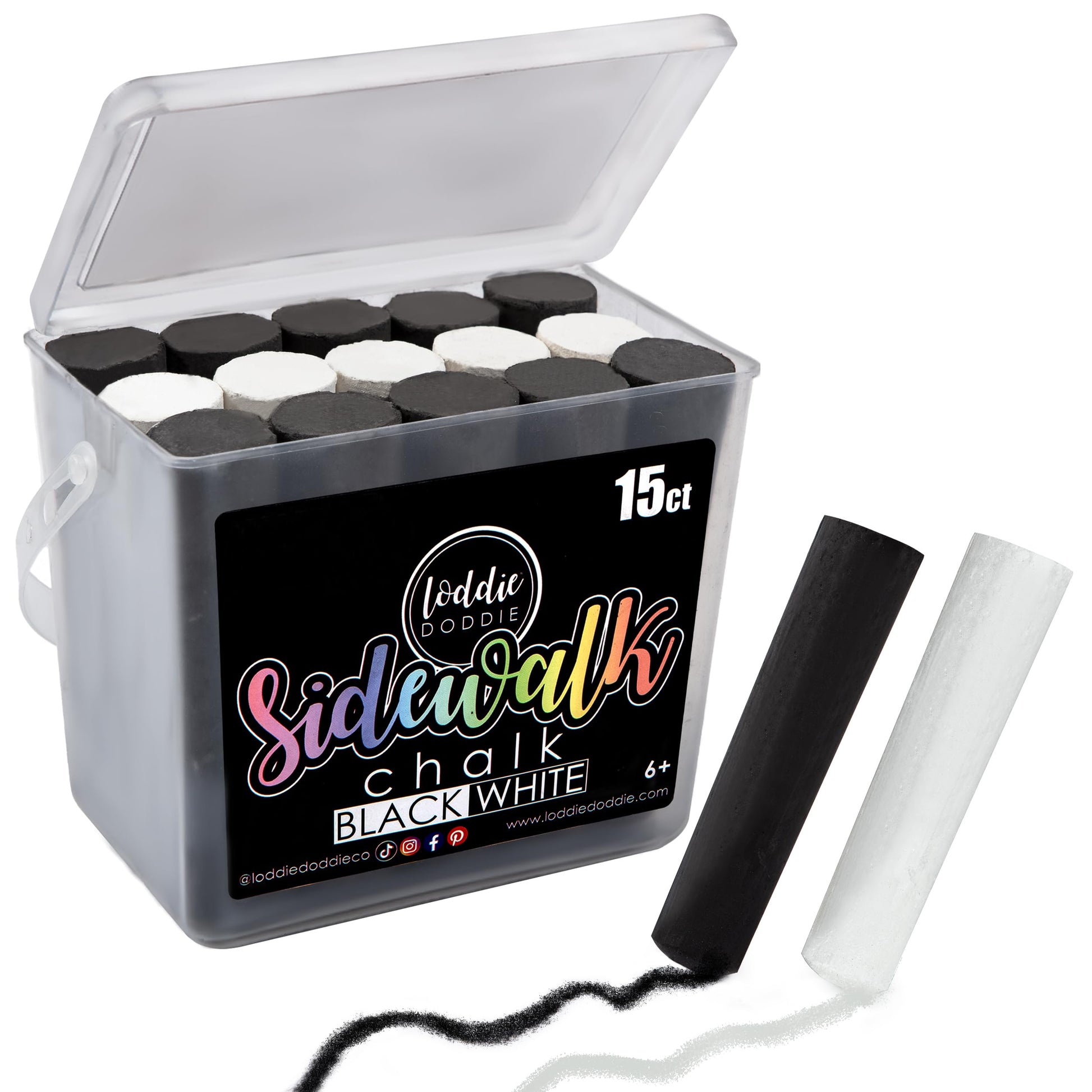 Loddie Doddie- 15Ct Bucket Of Sidewalk Chalk- Black And White- Long Lasting Non-Toxic Jumbo Sticks- Reusable Bucket For Hours Of